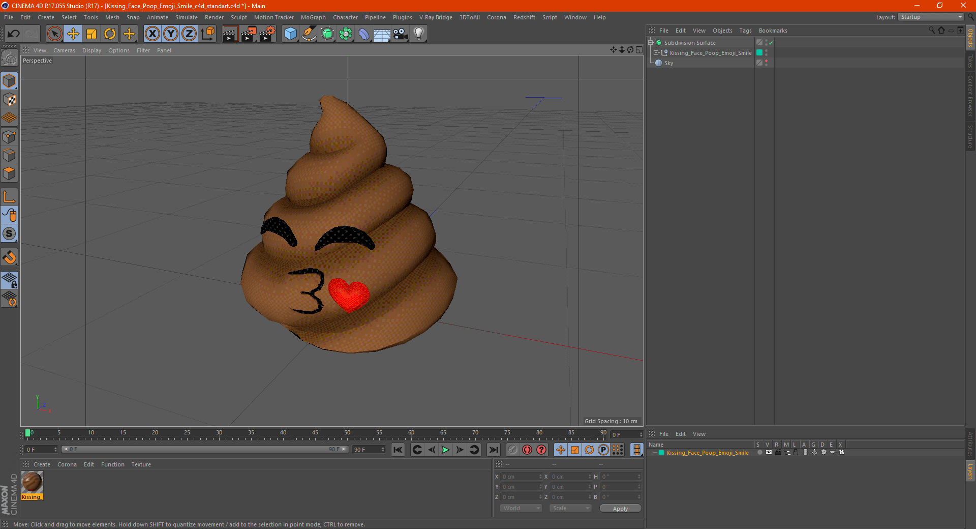 Kissing Face Poop Emoji Smile is a high quality, photo real 3d model that will enhance detail and realism to any of your rendering projects. The model has a fully textured, detailed design that allows for close-up renders, and was originally modeled in 3ds Max 2020 and rendered with V-Ray. Renders have no postprocessing!