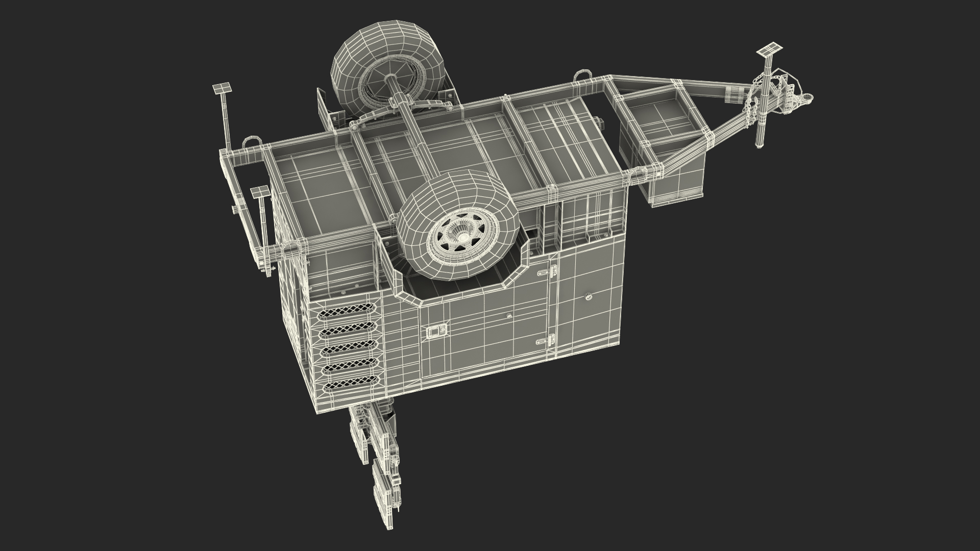 Kohler Mobile Generator with Lighting Mast Rigged is fully rigged and is ready to be animated. You can easily position it the way you need or animate it the way your project requires using helpers in 3D Studio Max. See the turntable to get an idea of how rigging works.