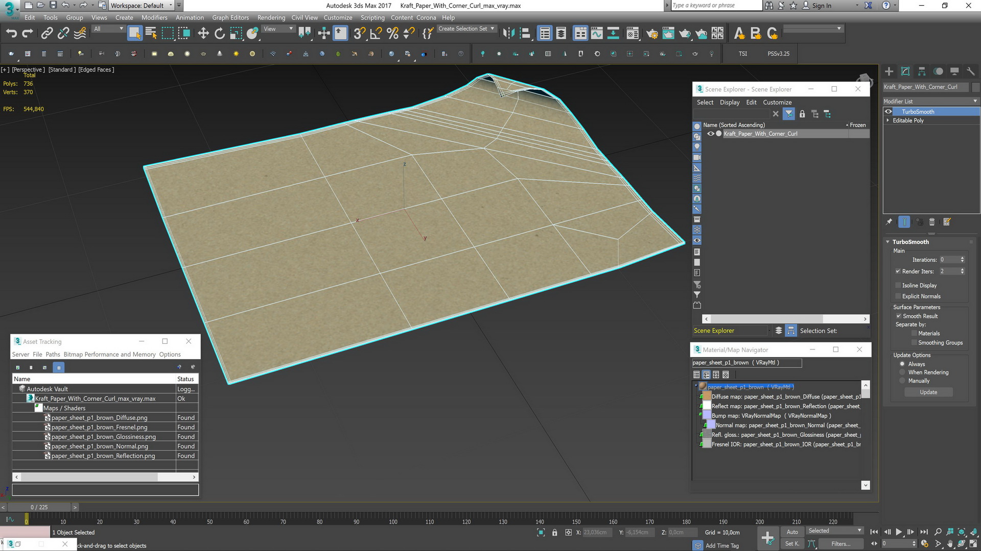 Kraft Paper With Corner Curl is a high quality, photo real 3d model that will enhance detail and realism to any of your rendering projects. The model has a fully textured, detailed design that allows for close-up renders, and was originally modeled in 3ds Max 2020 and rendered with V-Ray. Renders have no postprocessing!