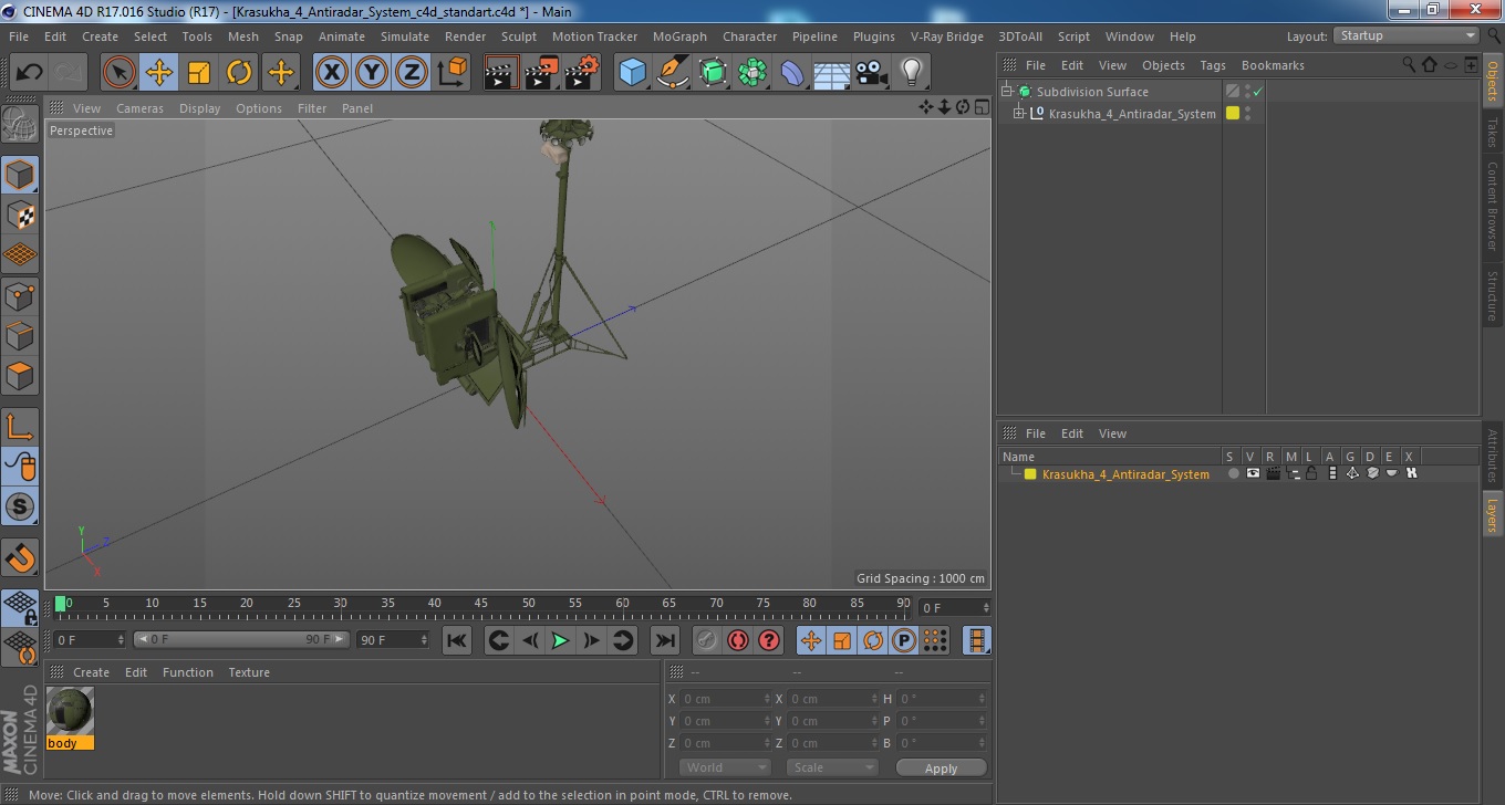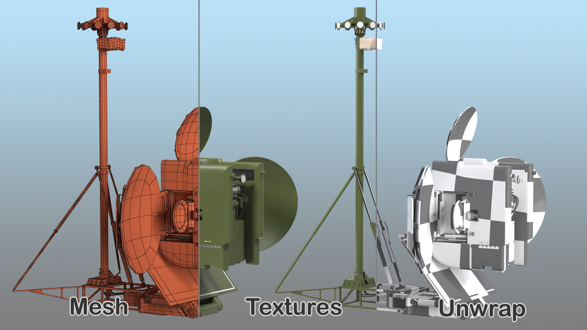 Krasukha 4 Antiradar System is a high quality, photo real 3d model that will enhance detail and realism to any of your rendering projects. The model has a fully textured, detailed design that allows for close-up renders, and was originally modeled in 3ds Max 2020 and rendered with V-Ray. Renders have no postprocessing!