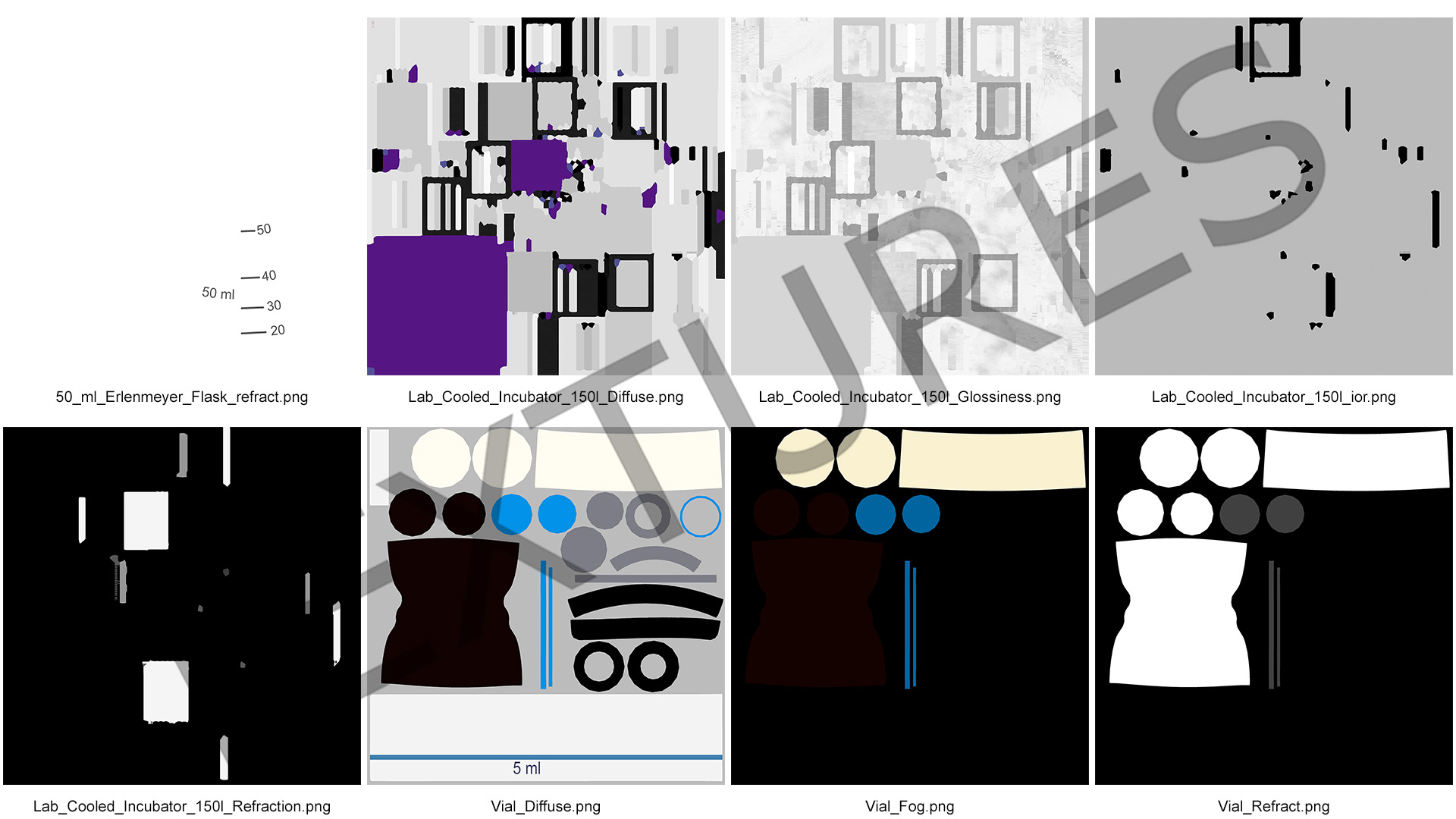 All textures and materials are included and mapped. (All colors can be easily modified.)