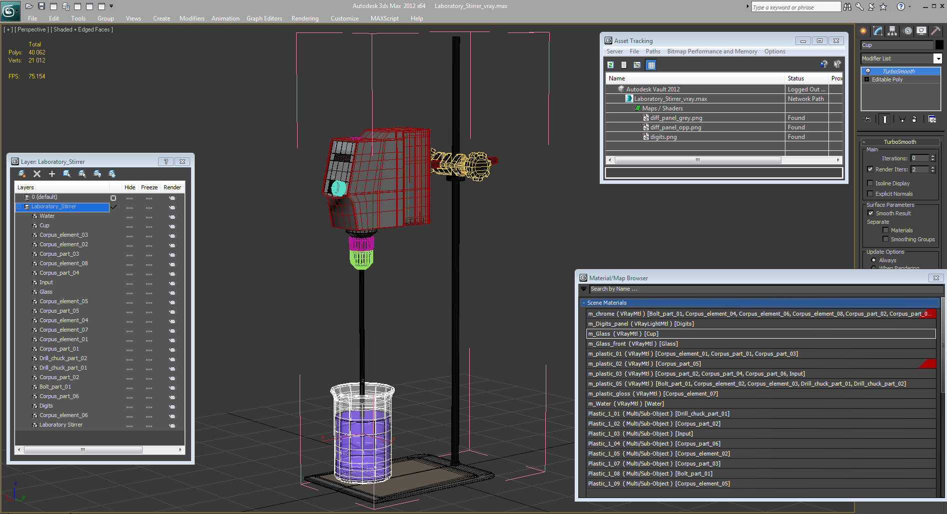 Laboratory Stirrer is a high quality, photo real 3d model that will enhance detail and realism to any of your rendering projects. The model has a fully textured, detailed design that allows for close-up renders, and was originally modeled in 3ds Max 2020 and rendered with V-Ray. Renders have no postprocessing!