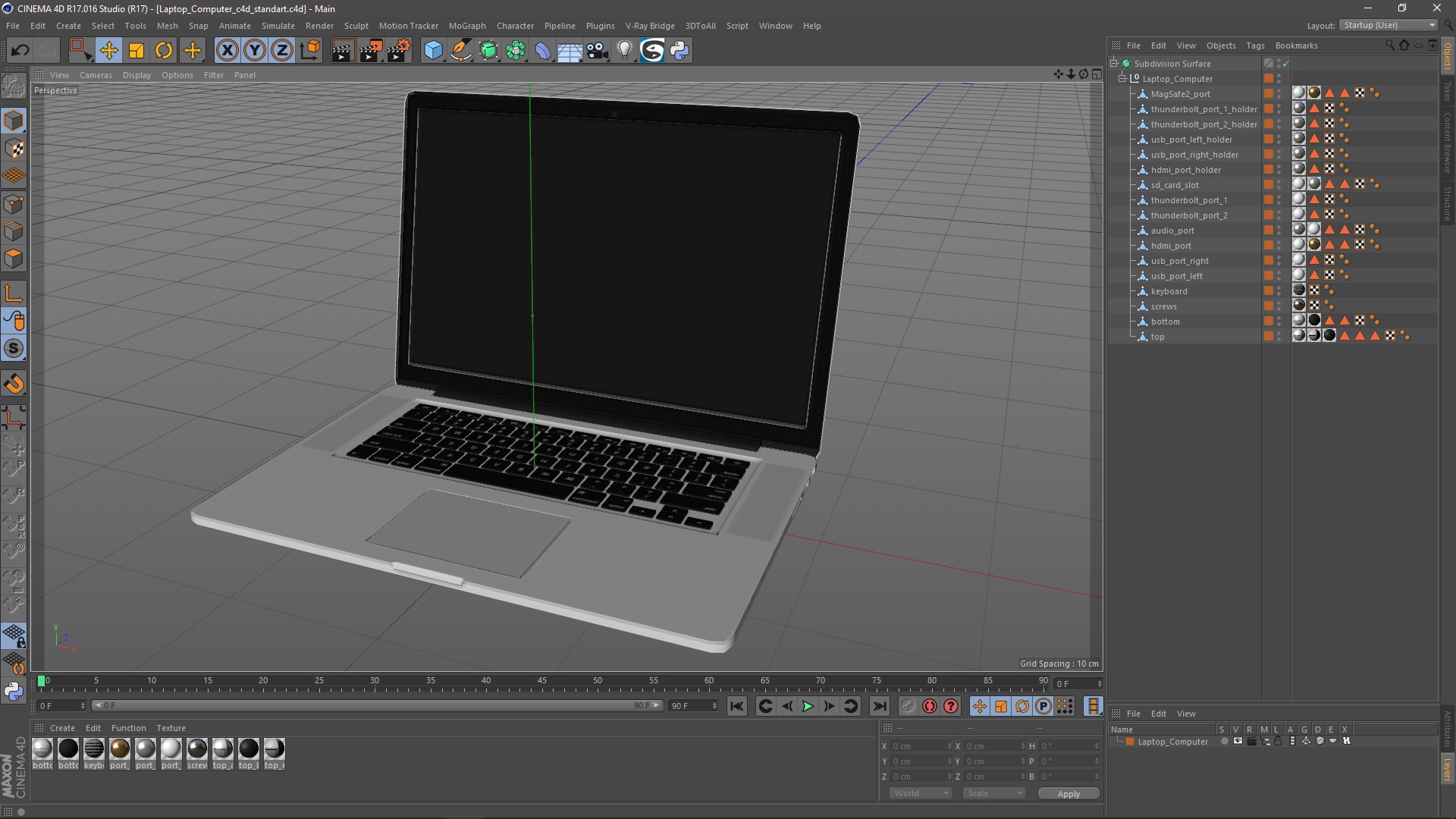 Laptop Computer is a high quality, photo real 3d model that will enhance detail and realism to any of your rendering projects. The model has a fully textured, detailed design that allows for close-up renders, and was originally modeled in 3ds Max 2020 and rendered with V-Ray. Renders have no postprocessing!