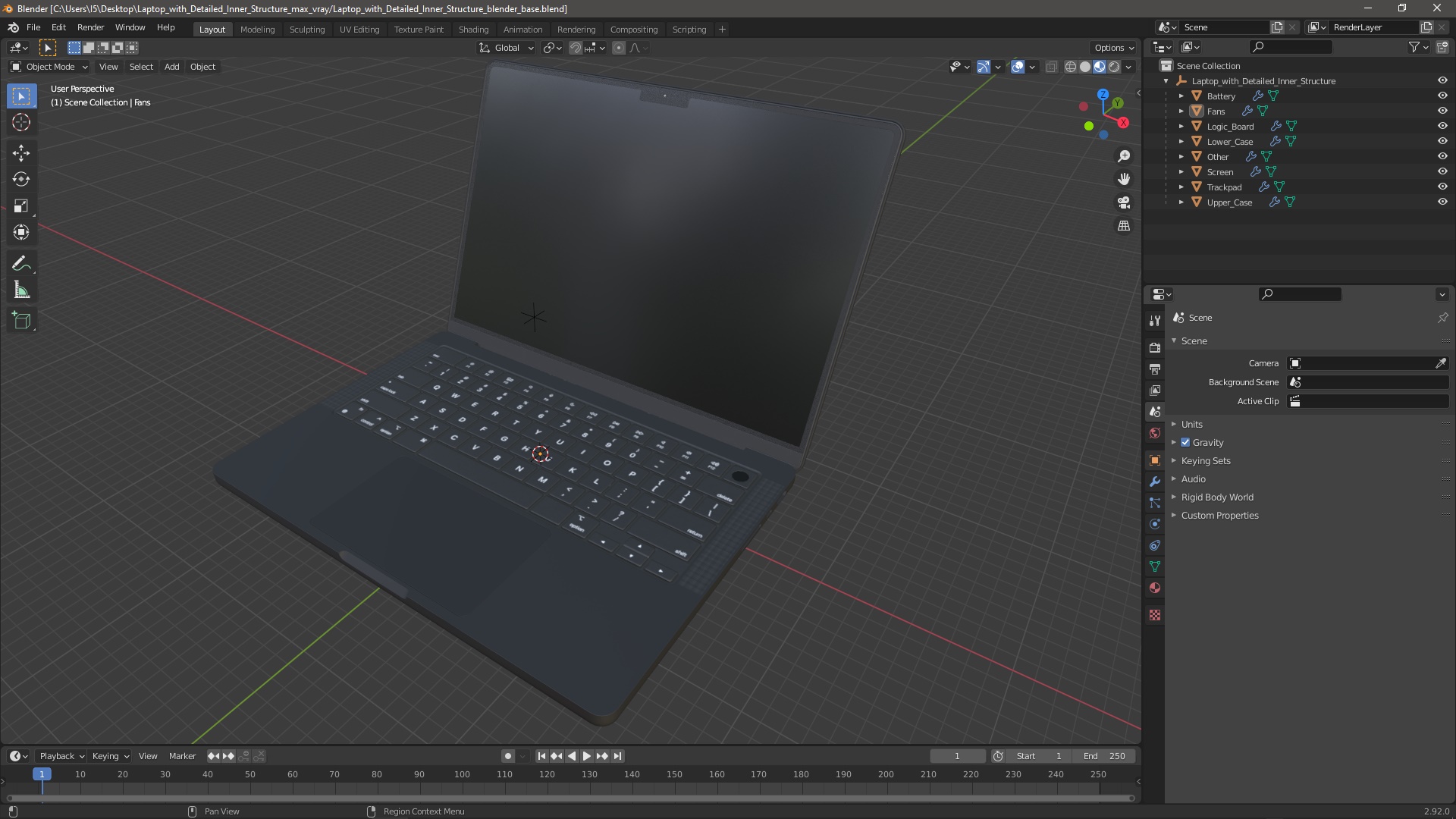 Laptop with Detailed Inner Structure is a 3d model of portable computer that is designed to be easily moved and used in different locations.