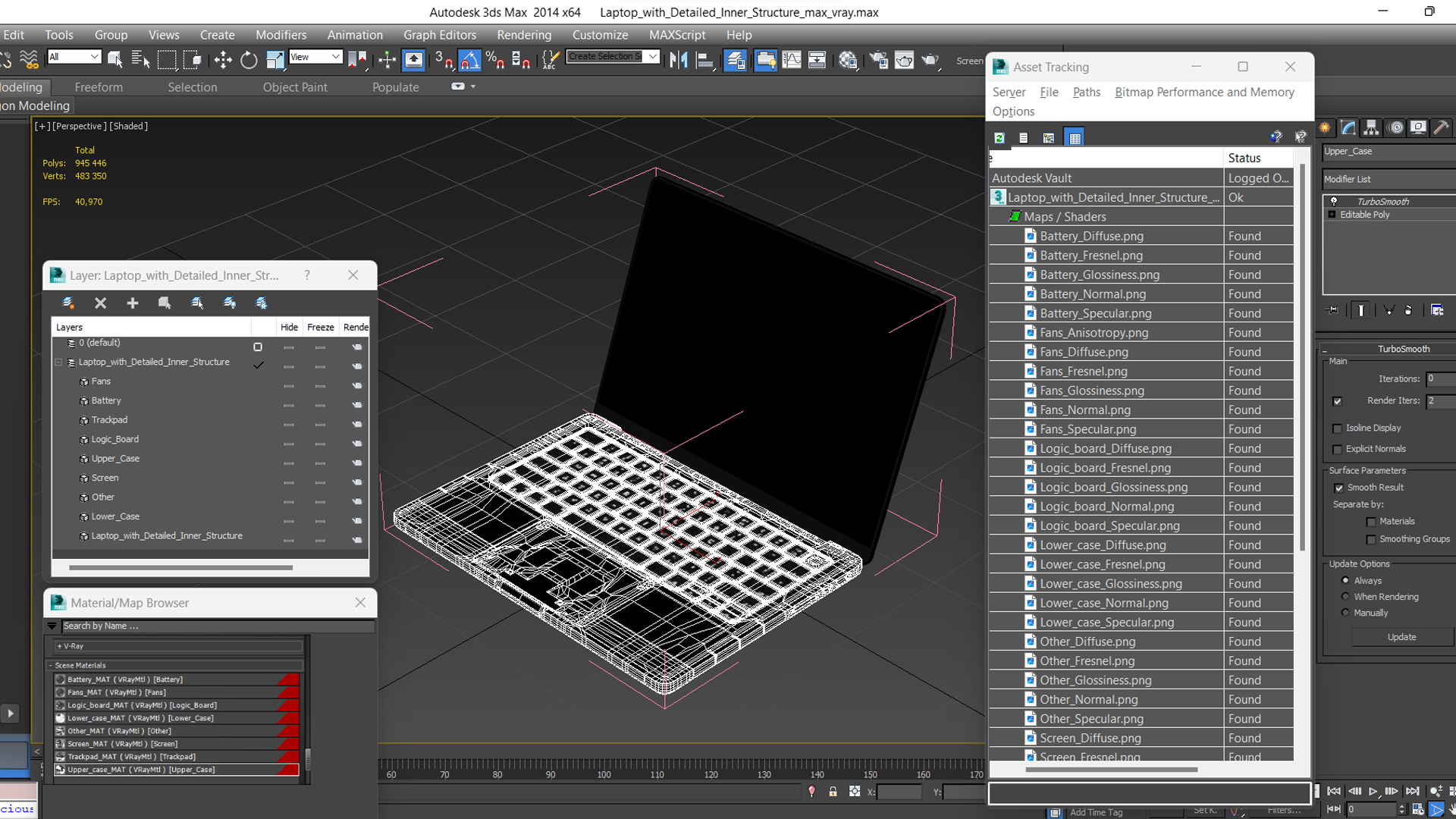 Laptop with Detailed Inner Structure is a high quality, photo real 3d model that will enhance detail and realism to any of your rendering projects. The model has a fully textured, detailed design that allows for close-up renders, and was originally modeled in 3ds Max 2020 and rendered with V-Ray. Renders have no postprocessing!