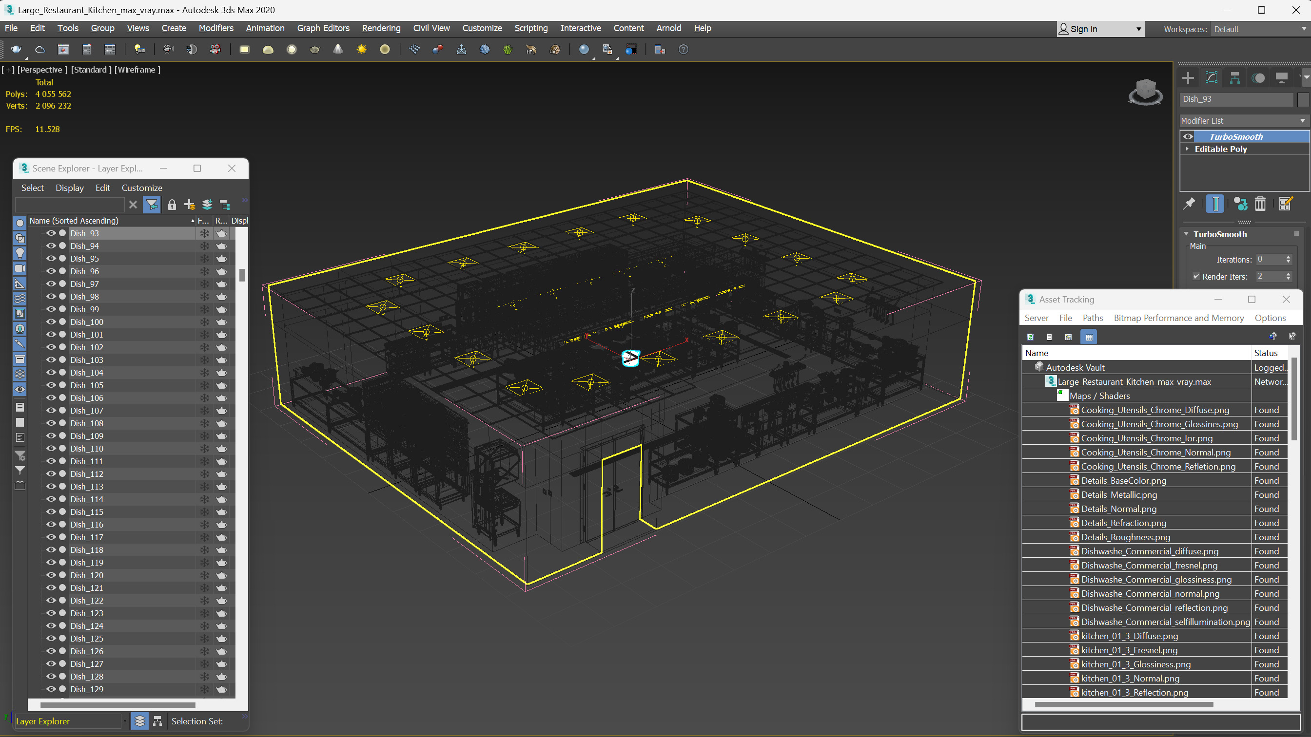 Large Restaurant Kitchen is a high quality, photo real 3d model that will enhance detail and realism to any of your rendering projects. The model has a fully textured, detailed design that allows for close-up renders, and was originally modeled in 3ds Max 2020 and rendered with V-Ray. Renders have no postprocessing!