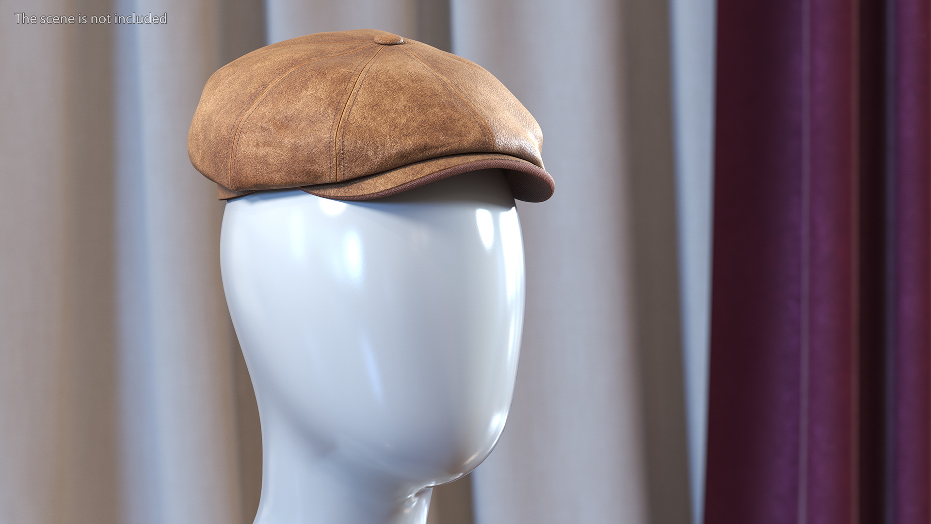Leather Flat Cap Brown is a three-dimensional model of a flat cap, which is a traditional rounded cap with a compact stiff brim in front, which originate in the British Isles.