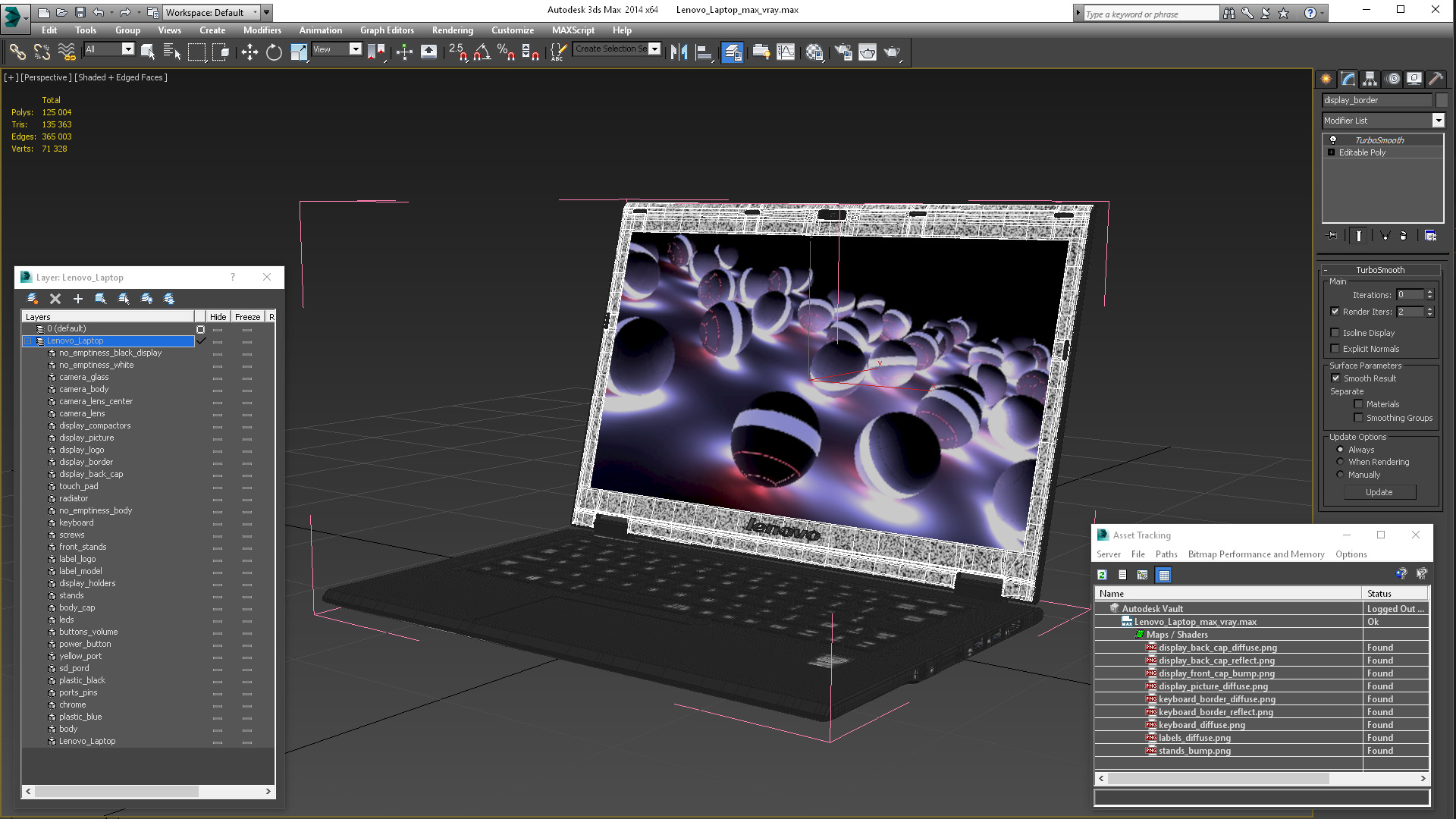 Lenovo Laptop is a high quality, photo real 3d model that will enhance detail and realism to any of your rendering projects. The model has a fully textured, detailed design that allows for close-up renders, and was originally modeled in 3ds Max 2020 and rendered with V-Ray. Renders have no postprocessing!