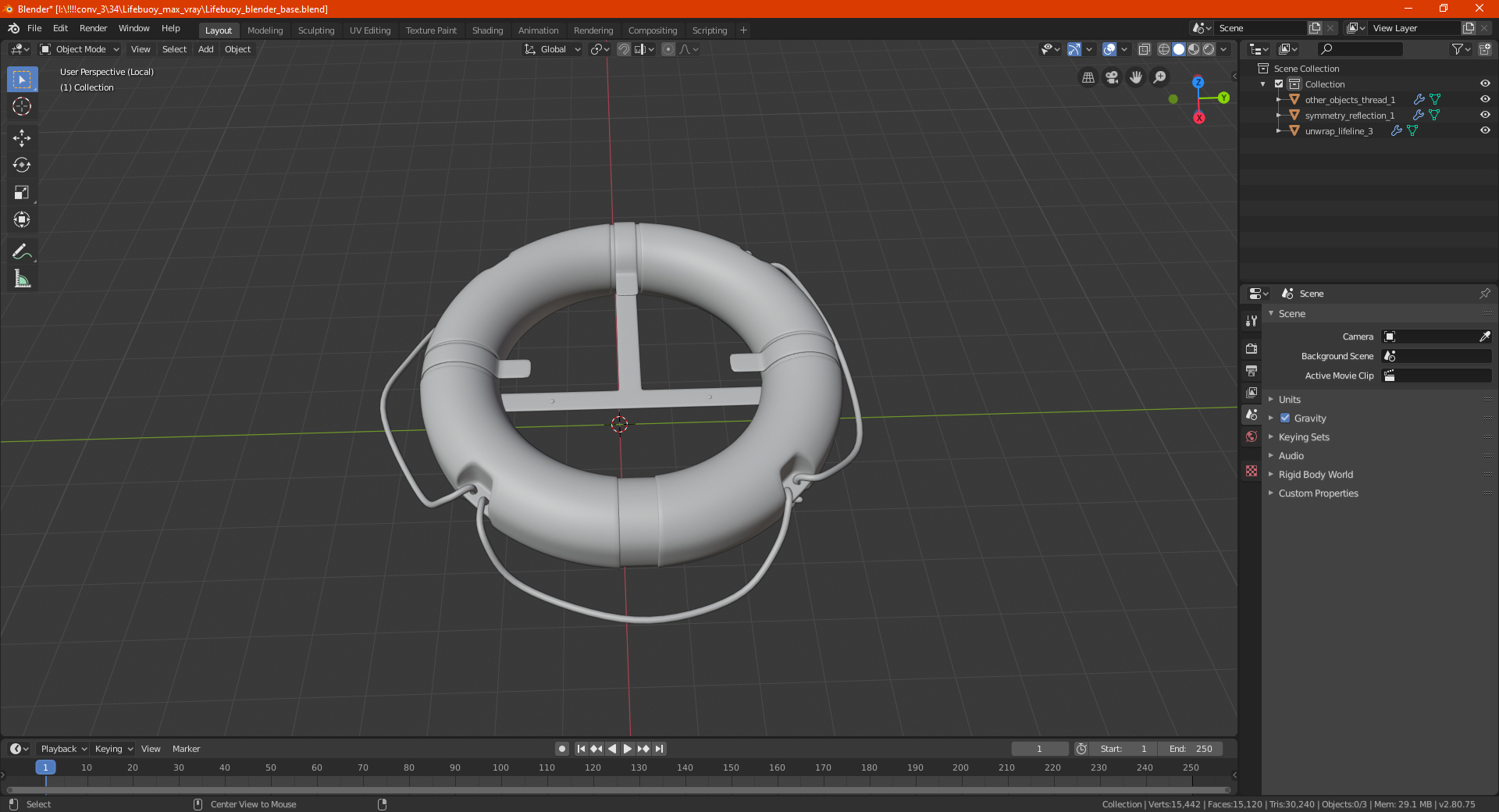 Lifebuoy is a high quality, photo real 3d model that will enhance detail and realism to any of your rendering projects. The model has a fully textured, detailed design that allows for close-up renders, and was originally modeled in 3ds Max 2020 and rendered with V-Ray. Renders have no postprocessing!