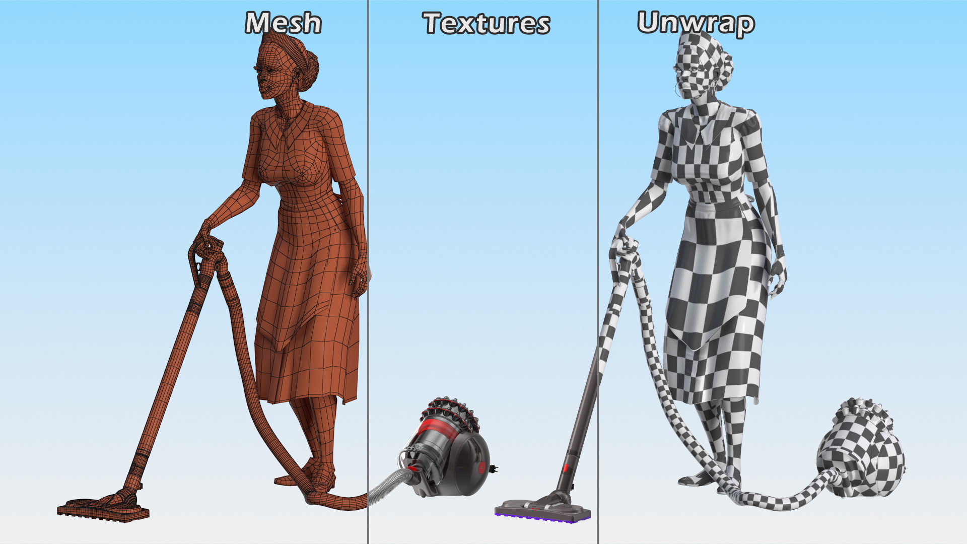 Light Skin Black Maid with Dyson Big Ball Vacuum Cleaner is a high quality, photo real 3d model that will enhance detail and realism to any of your rendering projects. The model has a fully textured, detailed design that allows for close-up renders, and was originally modeled in 3ds Max 2020 and rendered with V-Ray. Renders have no postprocessing!