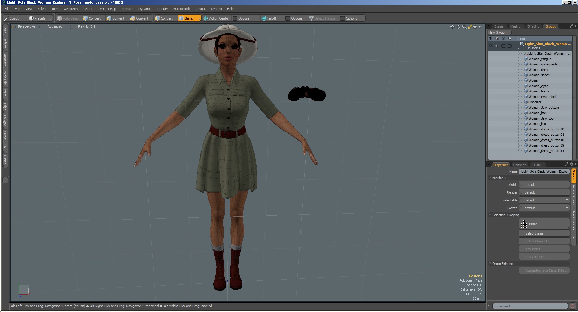 Light Skin Black Woman Explorer T Pose is a high quality, photo real 3d model that will enhance detail and realism to any of your rendering projects. The model has a fully textured, detailed design that allows for close-up renders, and was originally modeled in 3ds Max 2020 and rendered with V-Ray. Renders have no postprocessing!