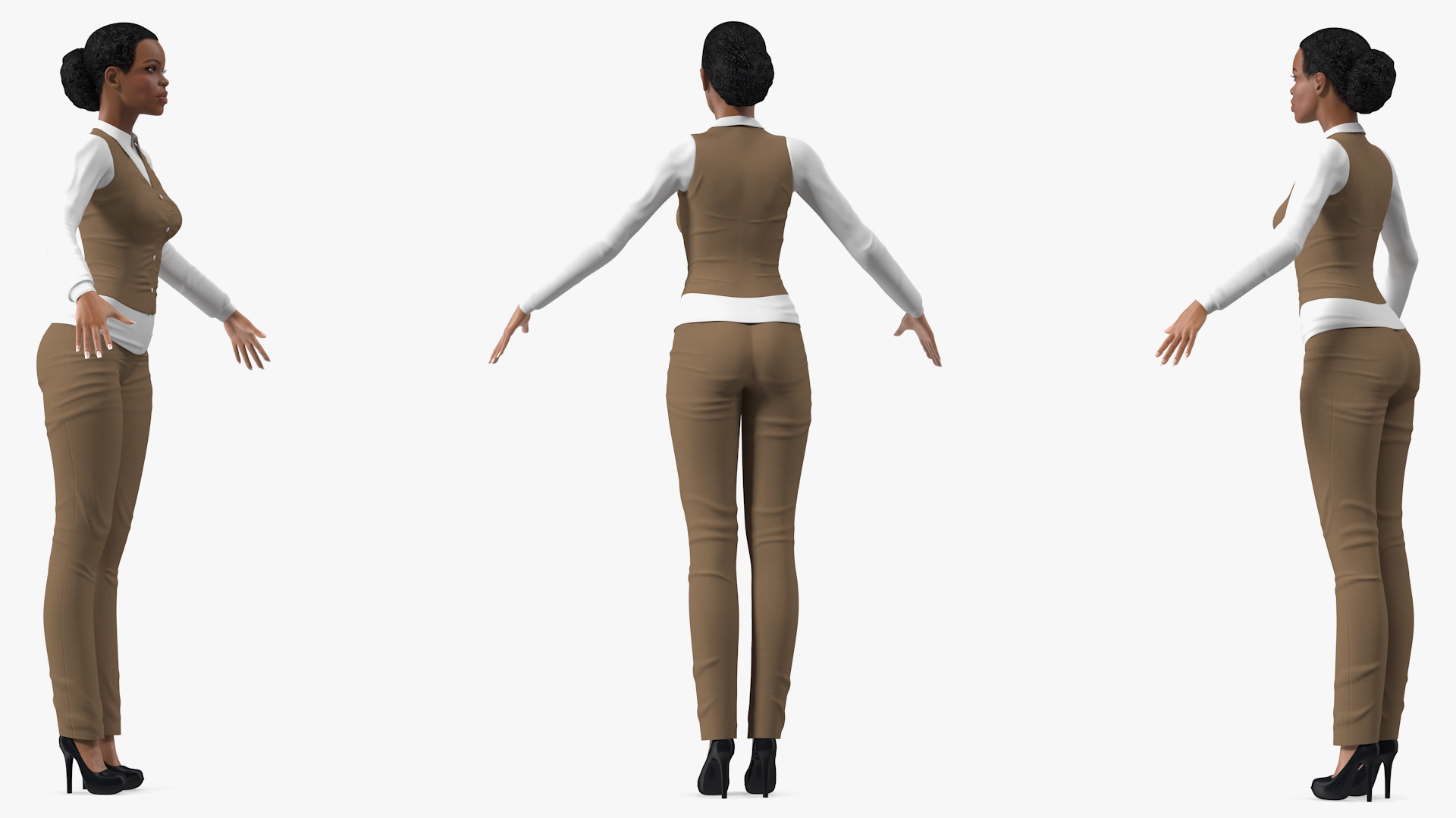 Light Skin Business Style Woman T Pose is a high quality, photo real 3d model that will enhance detail and realism to any of your rendering projects. The model has a fully textured, detailed design that allows for close-up renders, and was originally modeled in 3ds Max 2020 and rendered with V-Ray. Renders have no postprocessing!