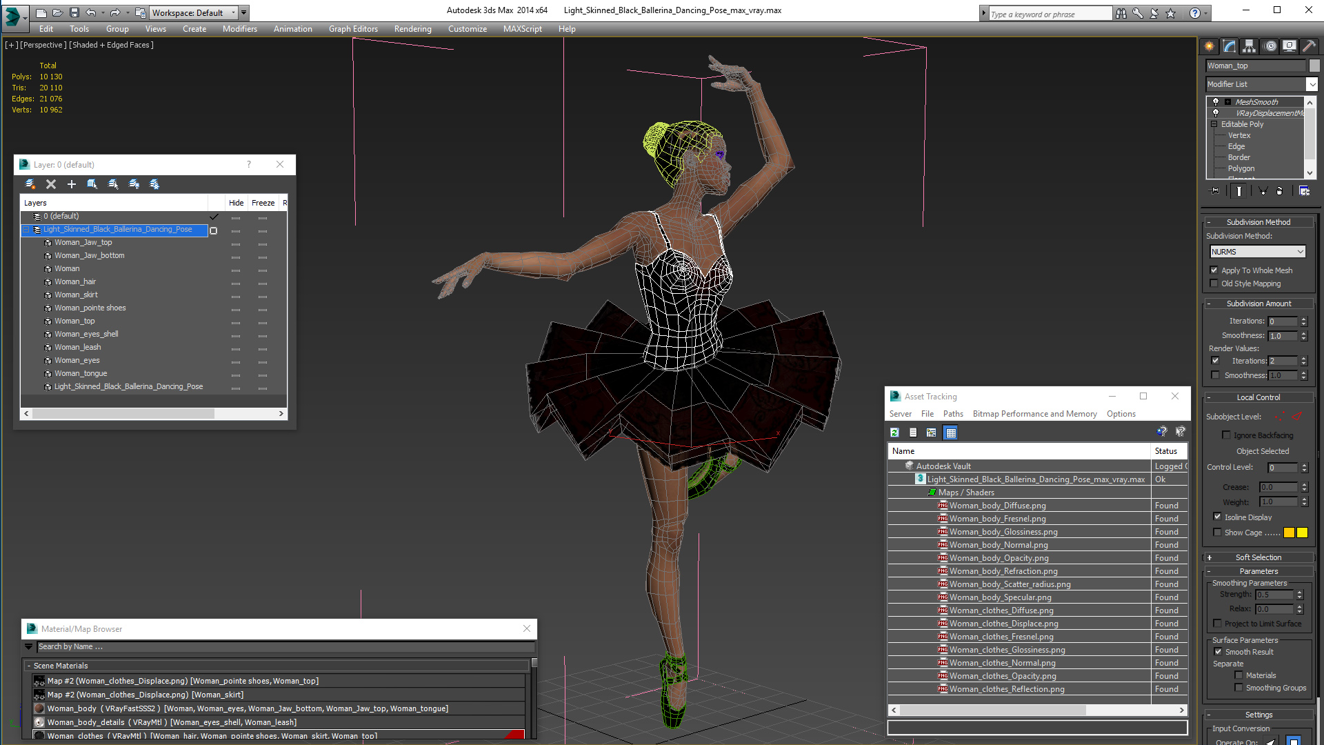 Light Skinned Black Ballerina Dancing Pose is a high quality, photo real 3d model that will enhance detail and realism to any of your rendering projects. The model has a fully textured, detailed design that allows for close-up renders, and was originally modeled in 3ds Max 2020 and rendered with V-Ray. Renders have no postprocessing!