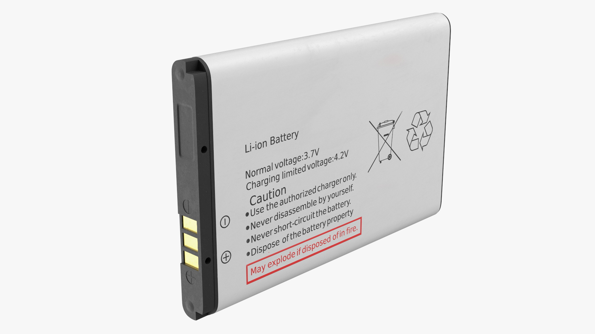Lithium Phone Battery is a three-dimensional model of lithium-ion battery (Li-ion battery, lithium, li ion battery or LIB) that is a part of mobile cellular phone communication device, and that is a small rechargeable electric power battery.