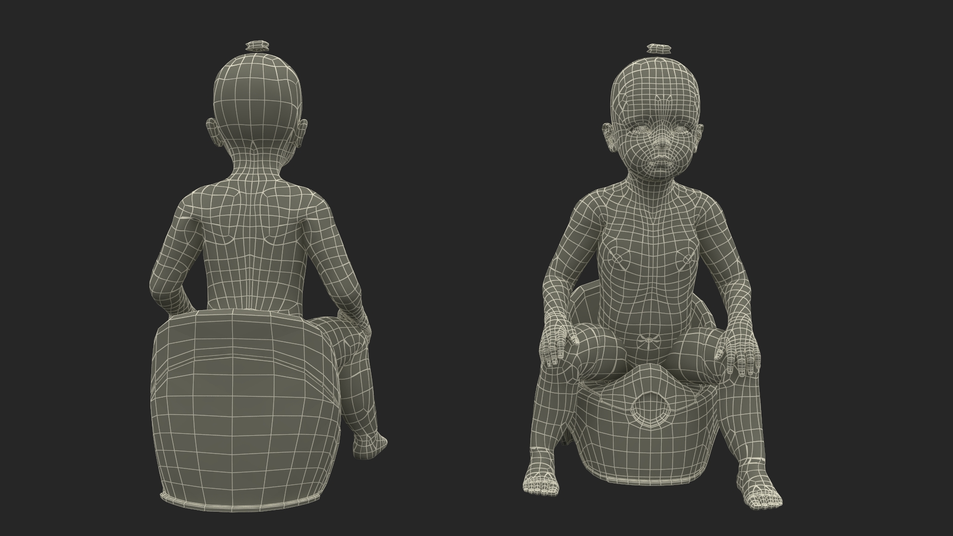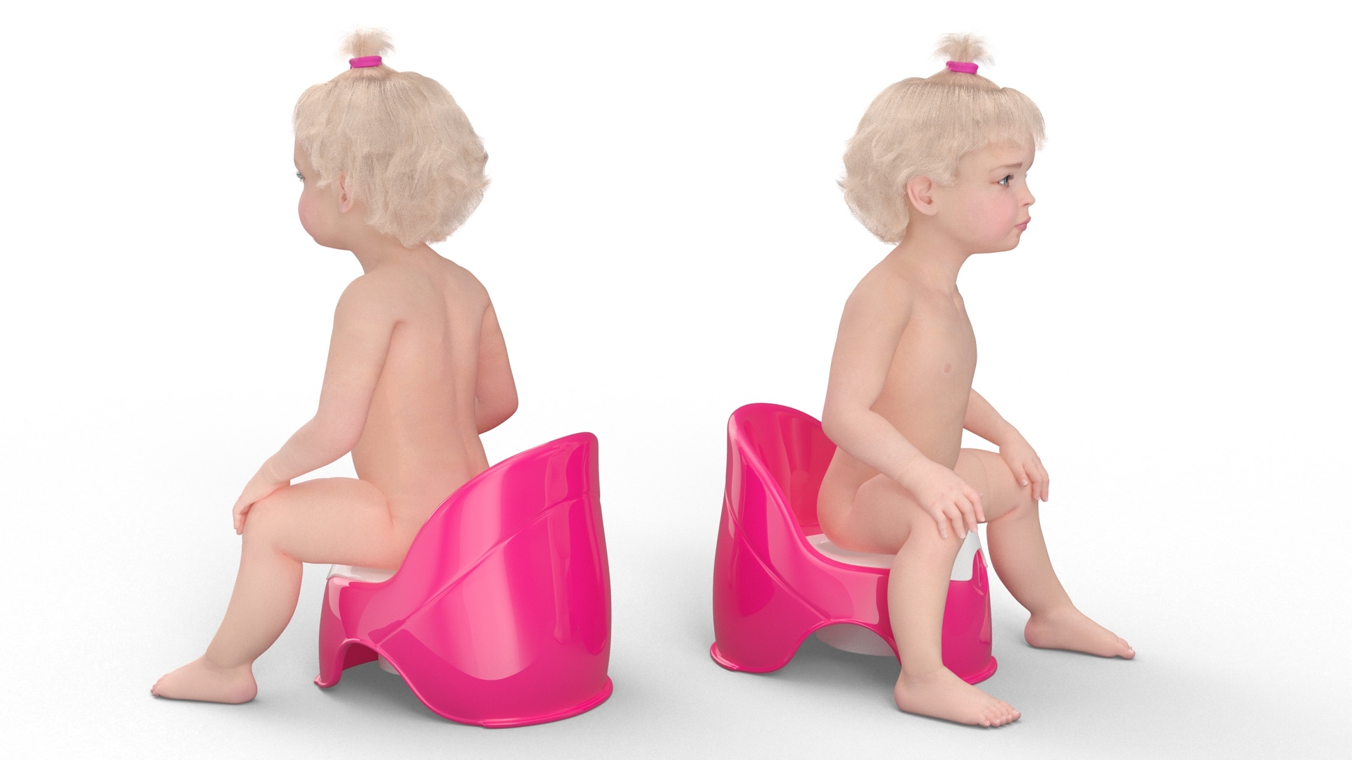 Little Girl on Potty Fur is a three-dimensional model of female toddler character who is a human female baby (female little one or small female kid), and who is a human infant girl in the early stage of life.