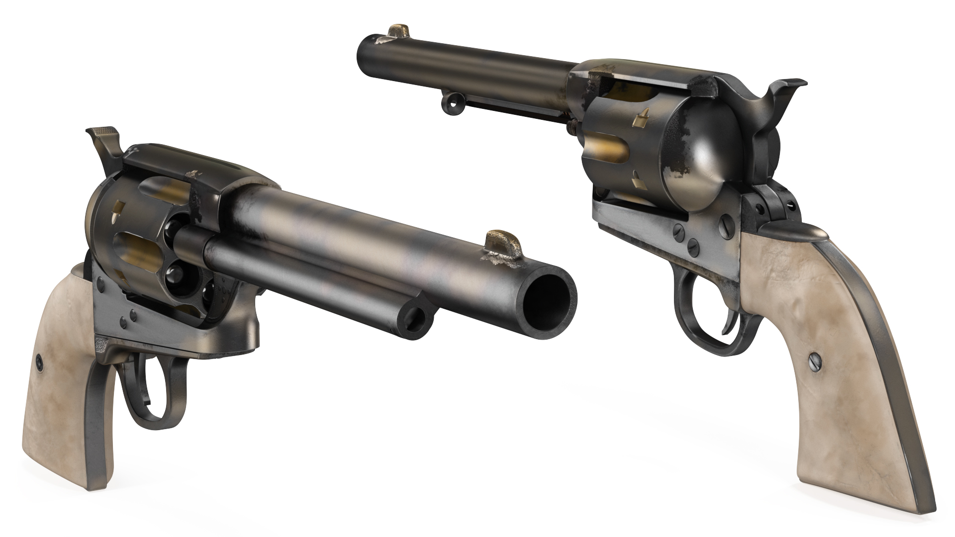 Loaded Revolver is a 3d model of handgun that has a revolving cylinder containing multiple chambers, each of which can hold a cartridge.