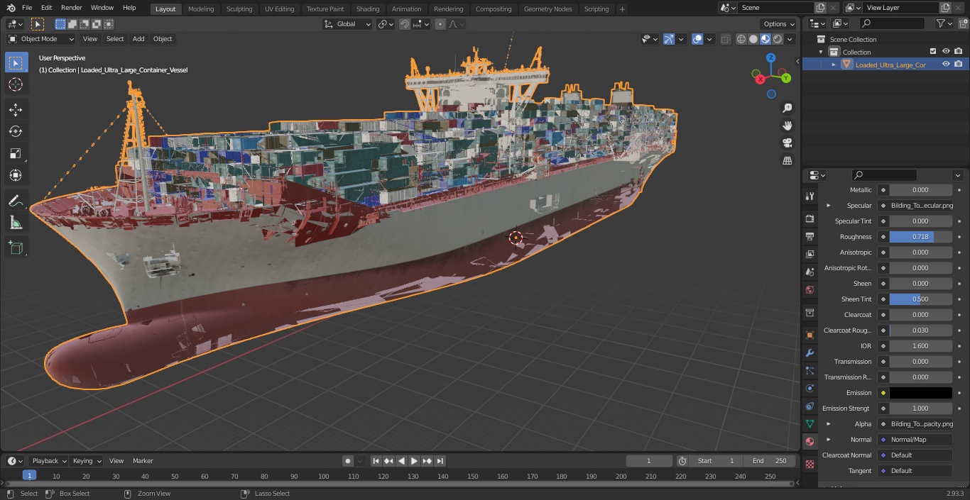 Loaded Ultra Large Container Vessel is a high quality, photo real 3d model that will enhance detail and realism to any of your rendering projects. The model has a fully textured, detailed design that allows for close-up renders, and was originally modeled in 3ds Max 2020 and rendered with V-Ray. Renders have no postprocessing!