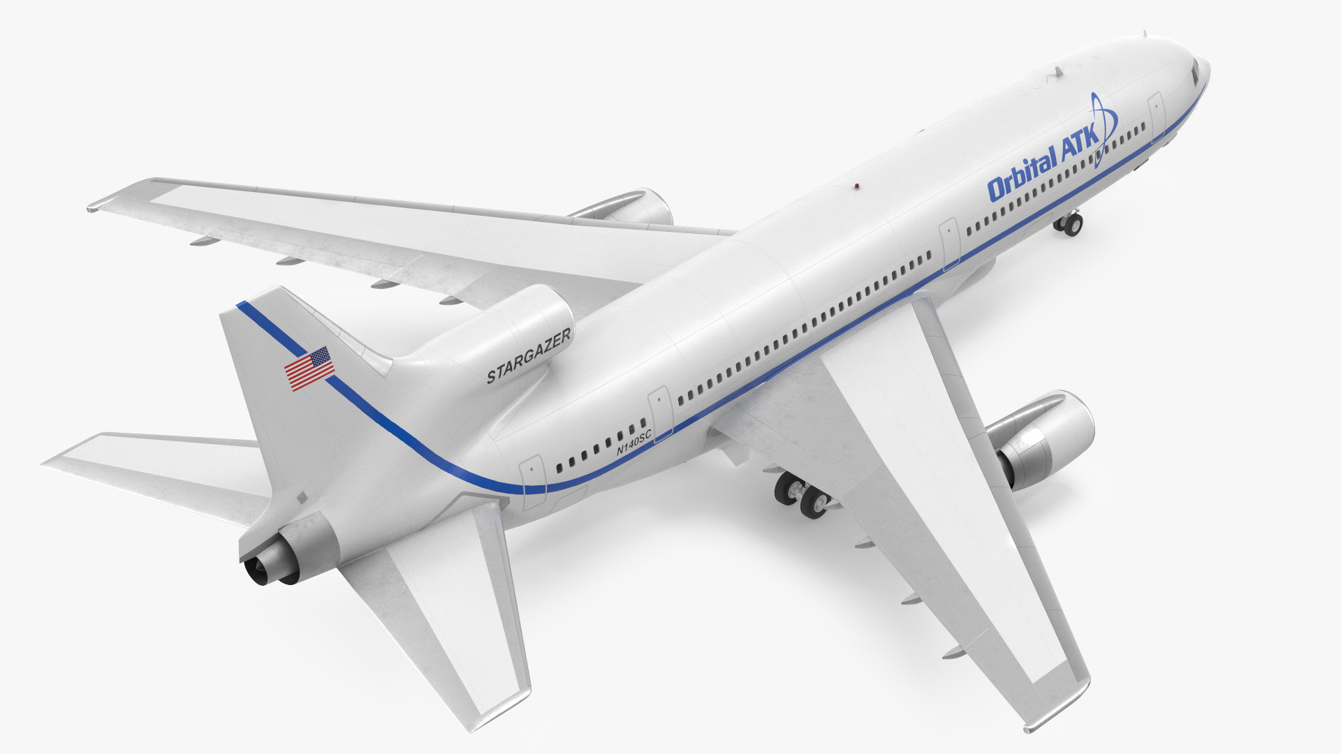 The Lockheed L1011 Stargazer (converted Lockheed L-1011 TriStar) carrier aircraft used for launches at an air-launched rockets.