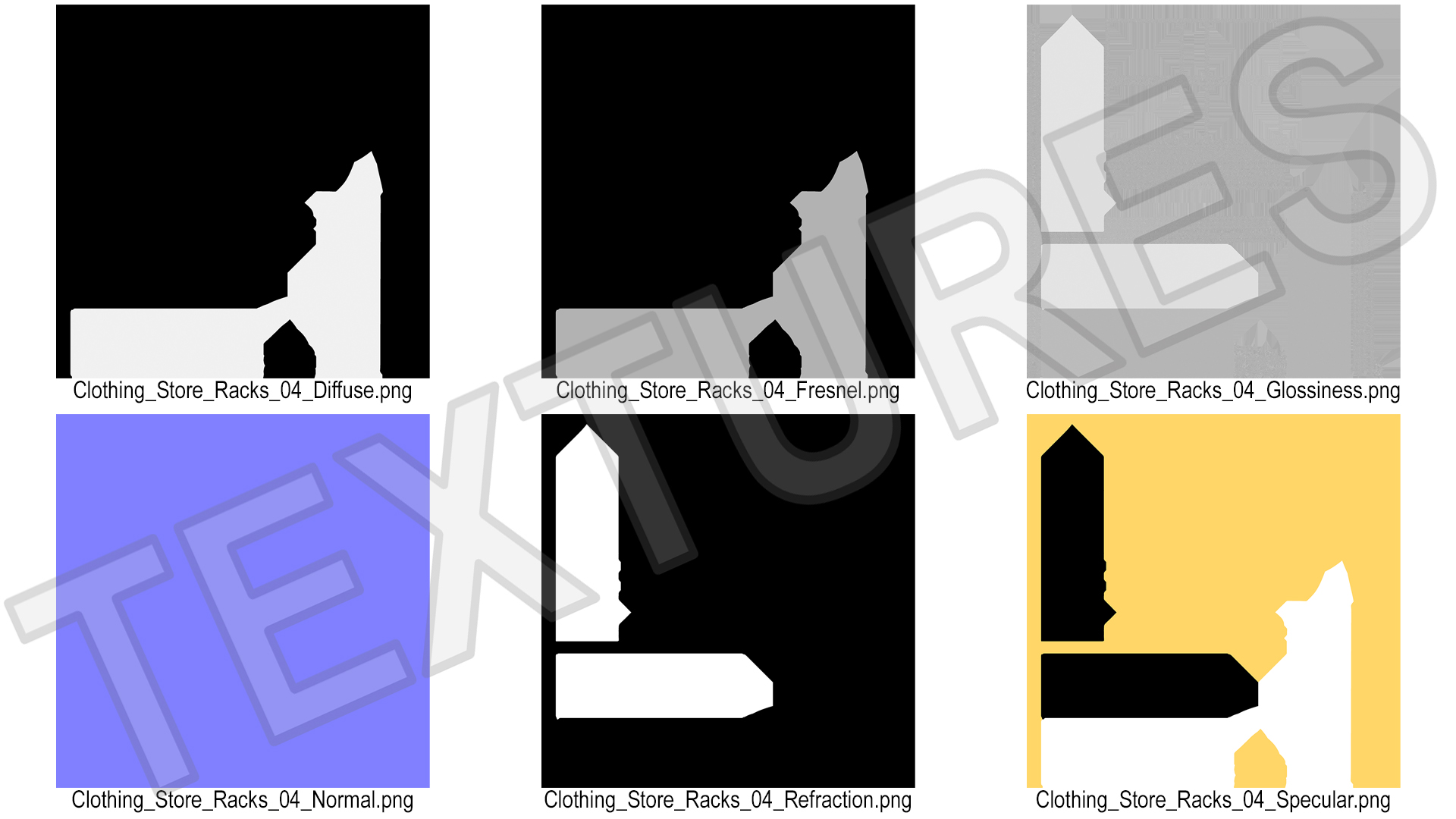 All textures and materials are included and mapped. (All colors can be easily modified.)