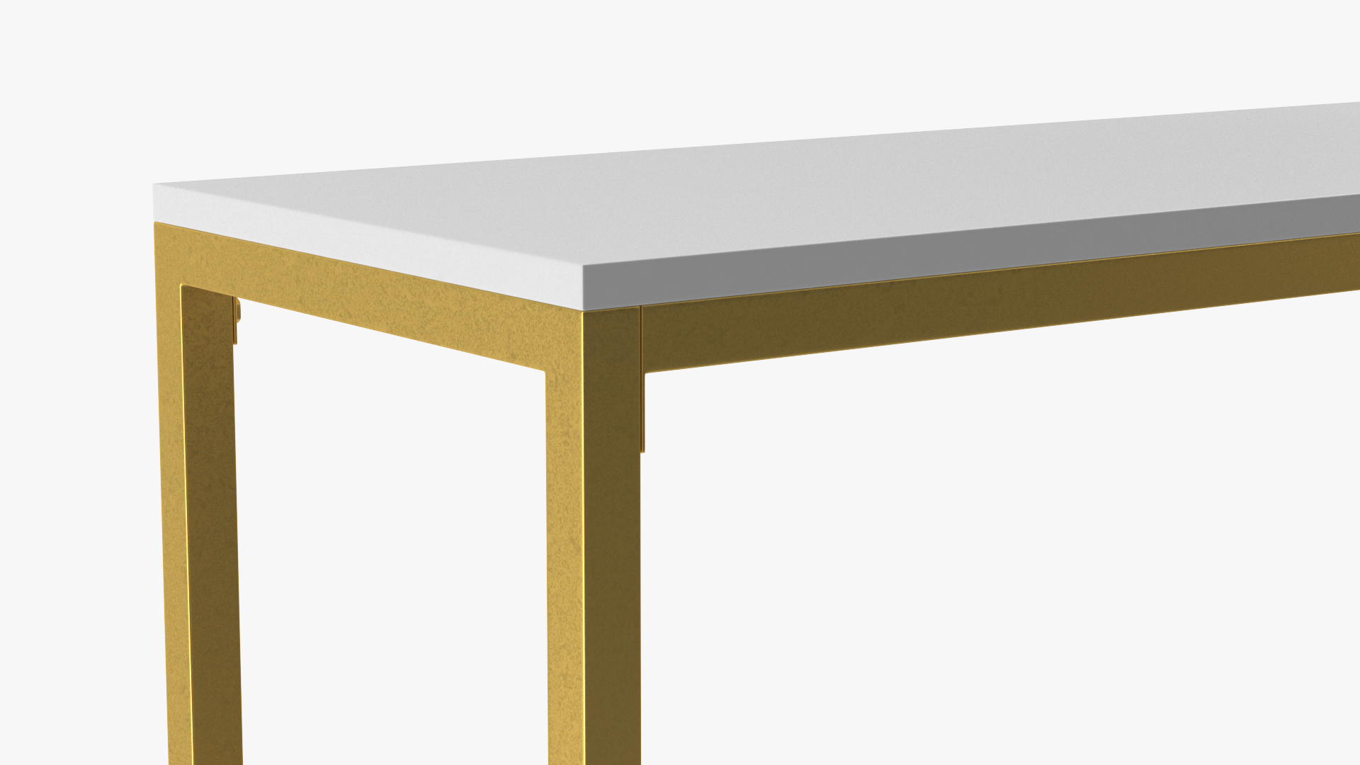 Low Shelf Golden is a three-dimensional model of rectangular clothes rack that is a table level metal frame that featuring a tabletop like flat horizontal surface, and that is a floor stand that designed for clothing storage and display, and that is used for clothing and dress store, boutique, shop or mall.