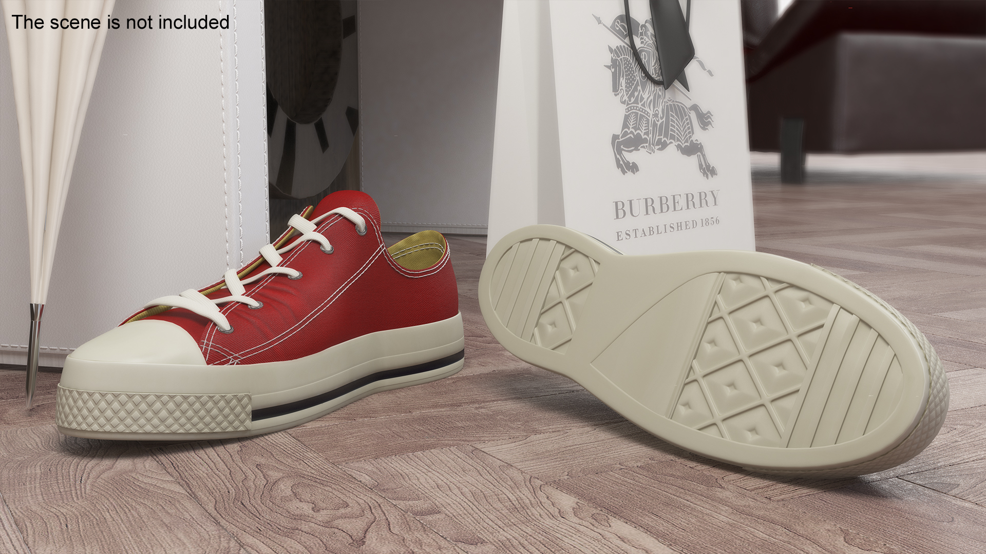Low Top Canvas Red Sneakers is a high quality, photo real 3d model that will enhance detail and realism to any of your rendering projects. The model has a fully textured, detailed design that allows for close-up renders, and was originally modeled in 3ds Max 2020 and rendered with V-Ray. Renders have no postprocessing!