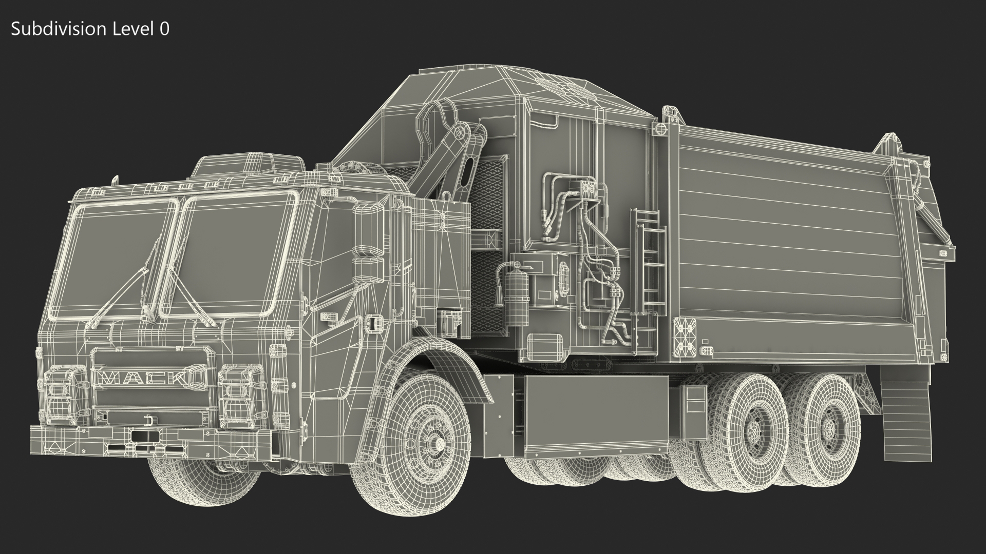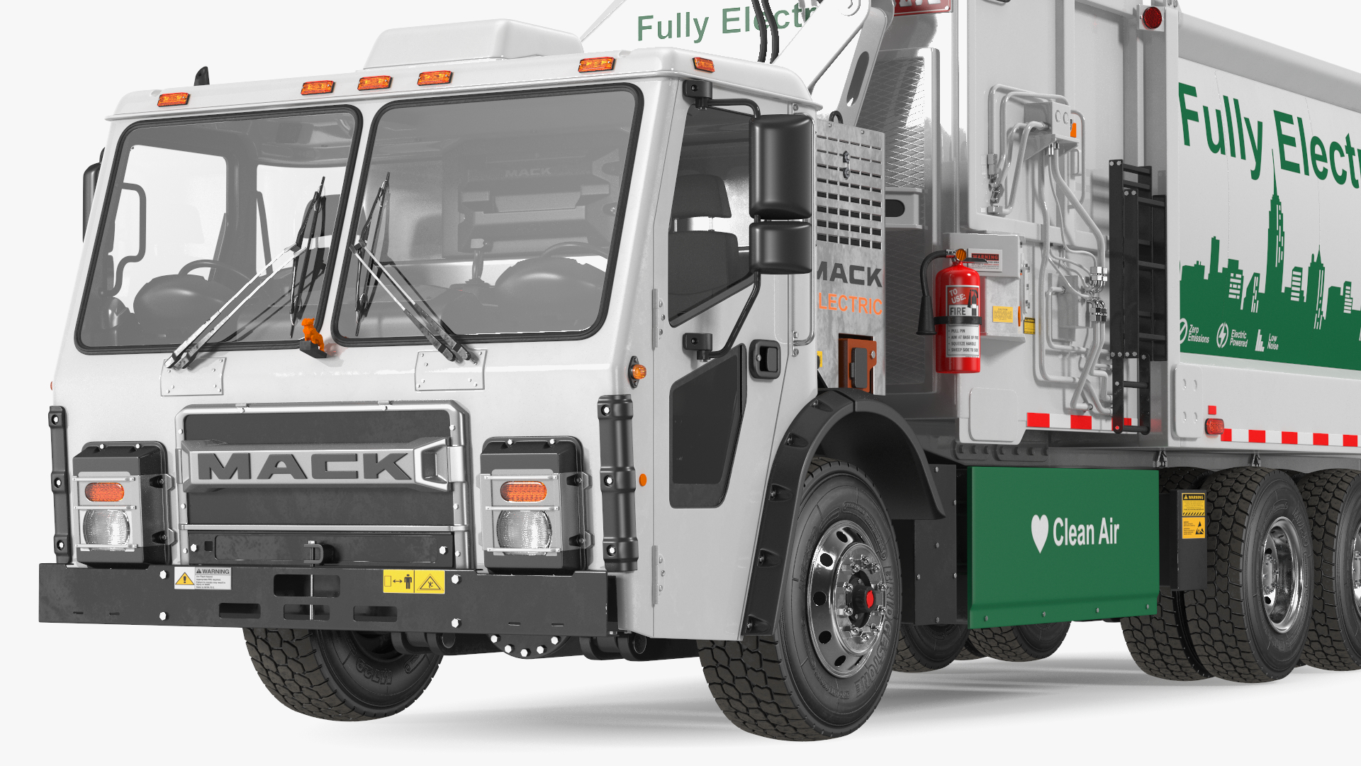 LR Electric Mack Truck White is a three-dimensional model of electric garbage truck (electric refuse truck) which is an innovative vehicle designed specifically for waste management.