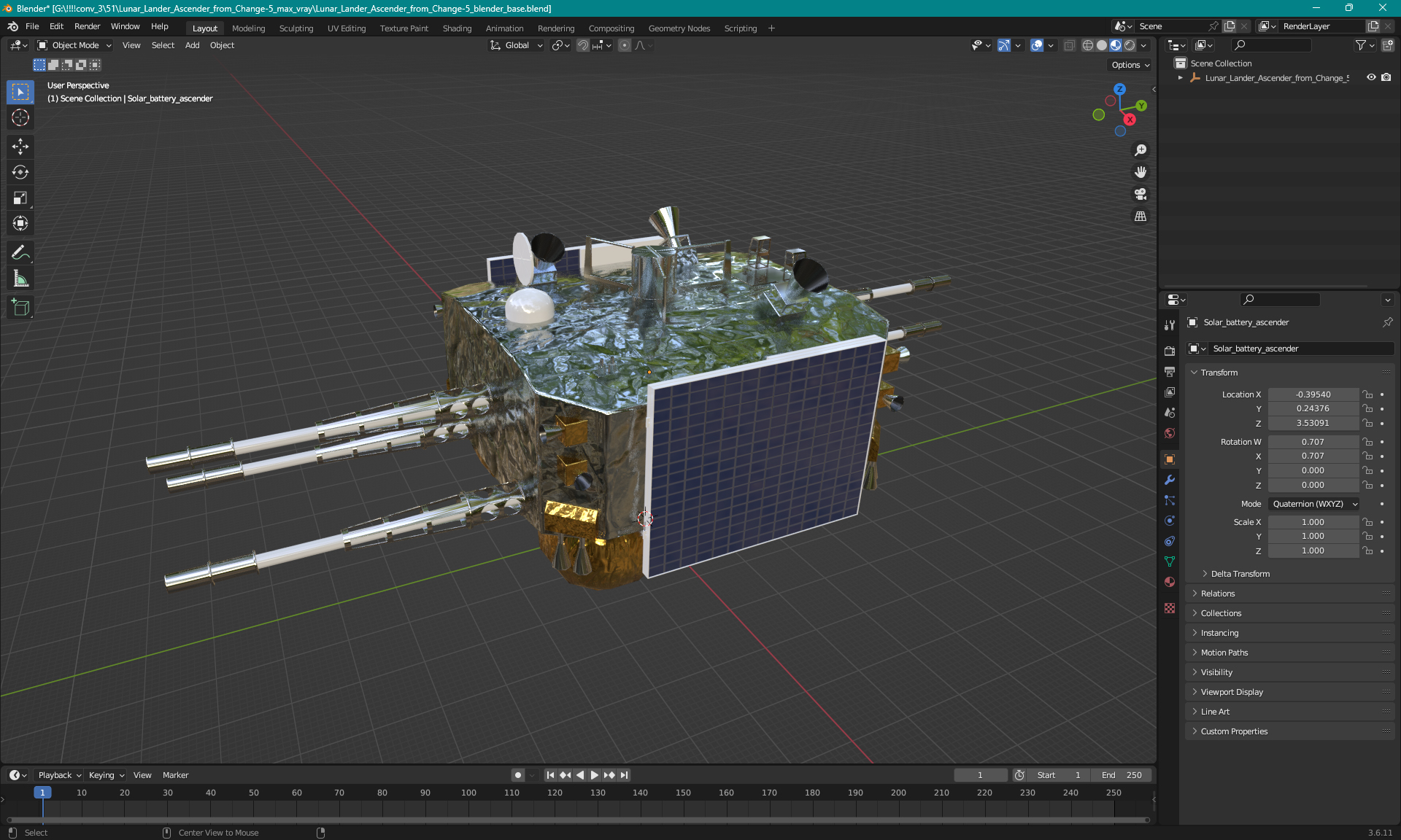 Lunar Lander Ascender from Change-5 is a high quality, photo real 3d model that will enhance detail and realism to any of your rendering projects. The model has a fully textured, detailed design that allows for close-up renders, and was originally modeled in 3ds Max 2020 and rendered with V-Ray. Renders have no postprocessing!