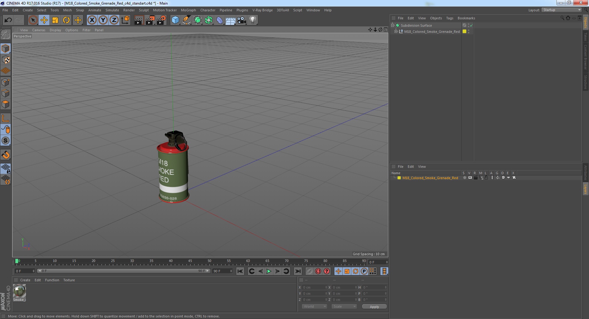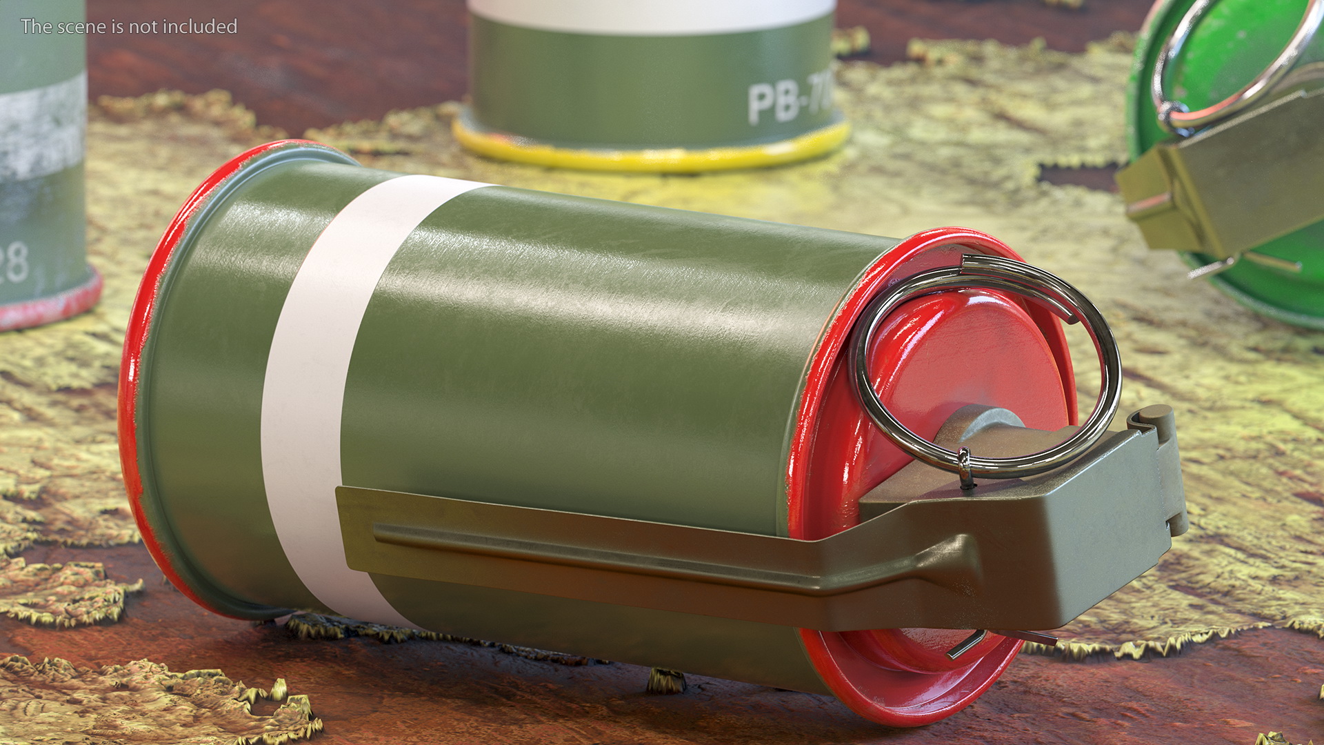 M18 Colored Smoke Grenade Red is a high quality, photo real 3d model that will enhance detail and realism to any of your rendering projects. The model has a fully textured, detailed design that allows for close-up renders, and was originally modeled in 3ds Max 2020 and rendered with V-Ray. Renders have no postprocessing!