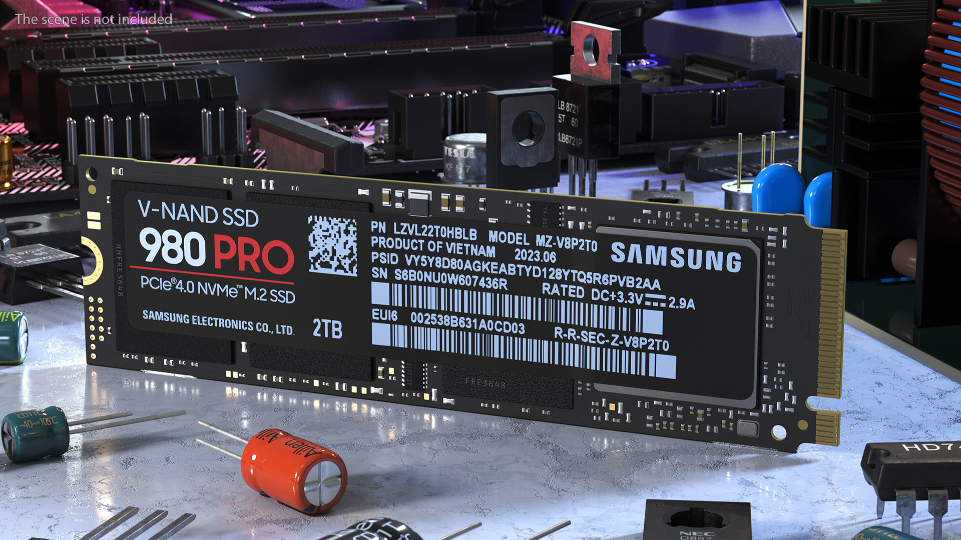 M2 NVMe SSD Samsung 980 Pro 2 TB is a high quality, photo real 3d model that will enhance detail and realism to any of your rendering projects. The model has a fully textured, detailed design that allows for close-up renders, and was originally modeled in 3ds Max 2020 and rendered with V-Ray. Renders have no postprocessing!