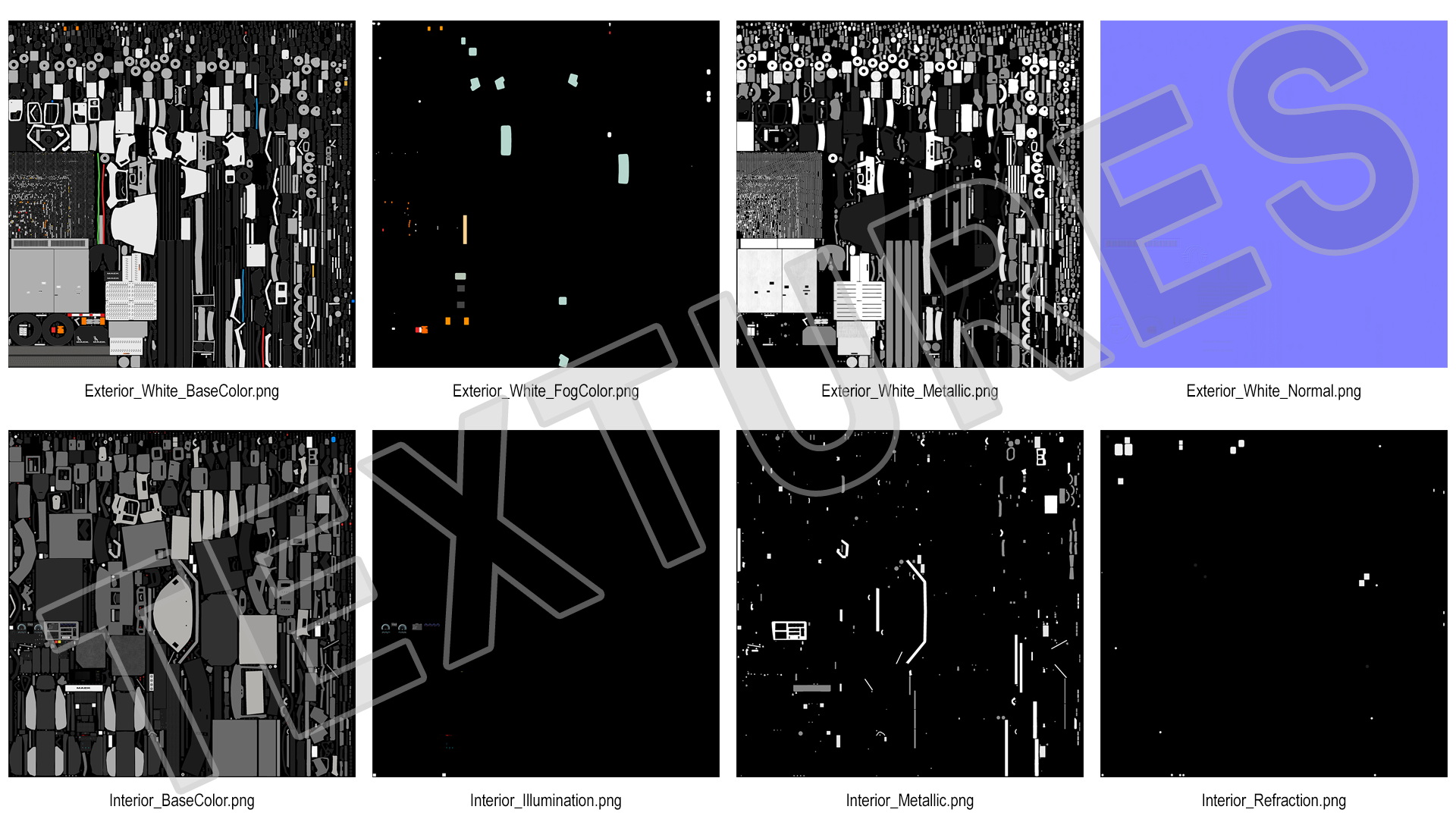 All textures and materials are included and mapped. (All colors can be easily modified.)