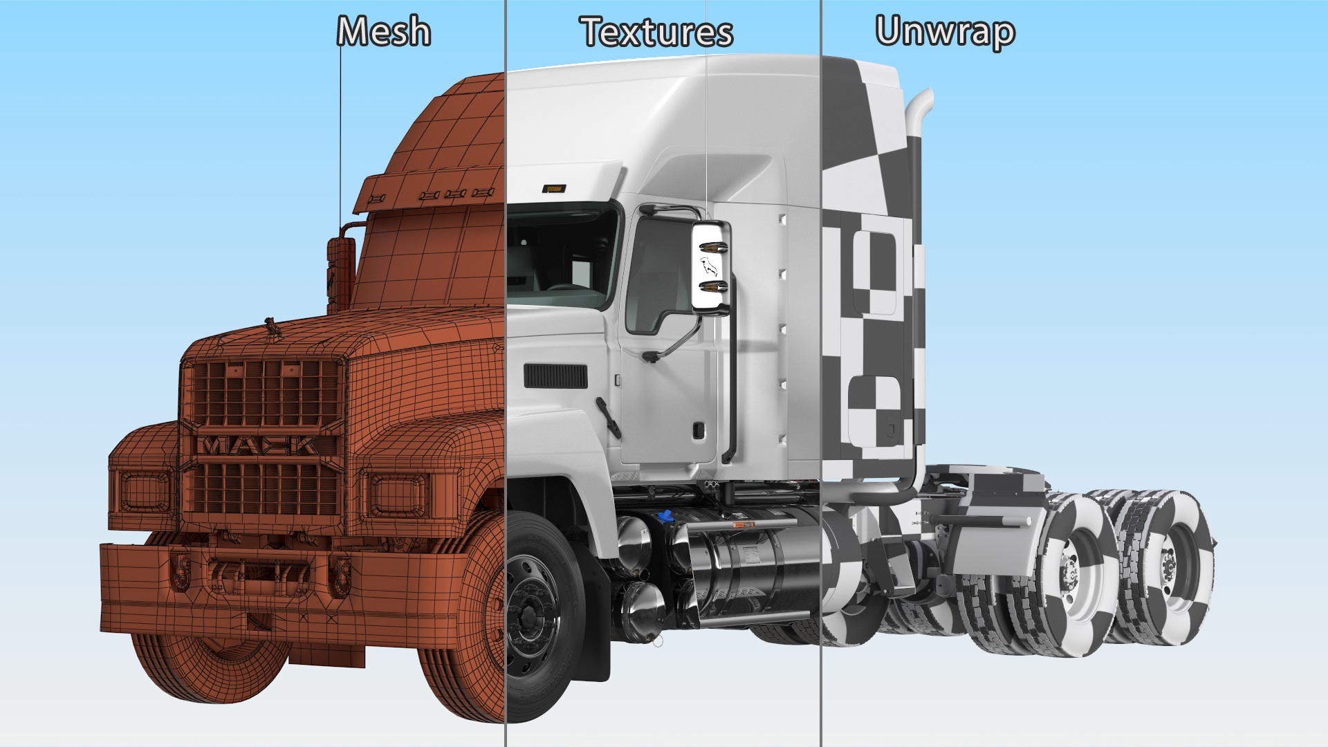 Mack Pinnacle 2025 Truck White is a 3d model of heavy-duty truck manufactured by Mack Trucks, known for its durability, reliability, and performance in the commercial trucking industry.