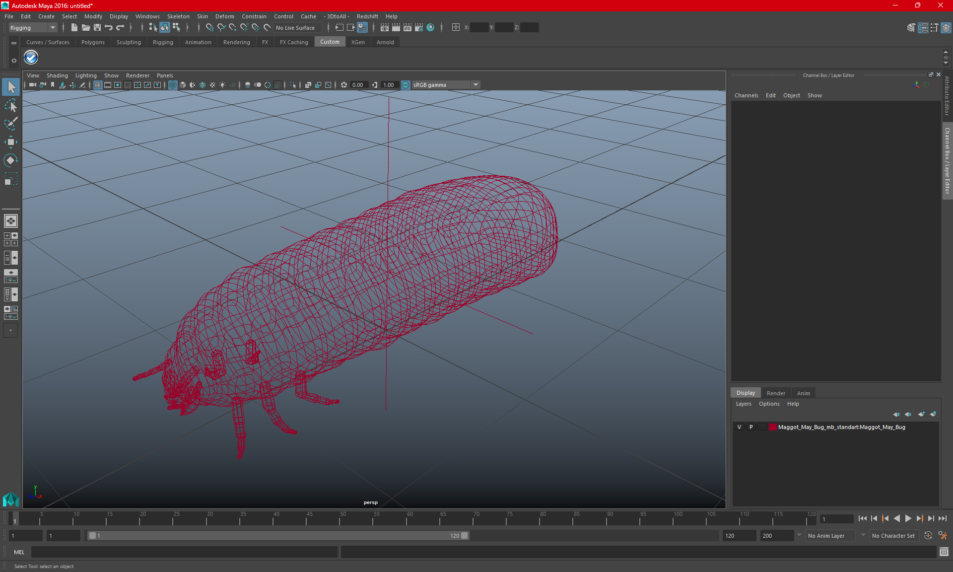 Maggot May Bug is a three-dimensional model of specimen of larval stage of insect, emerging from egg laid in decaying organic matter.