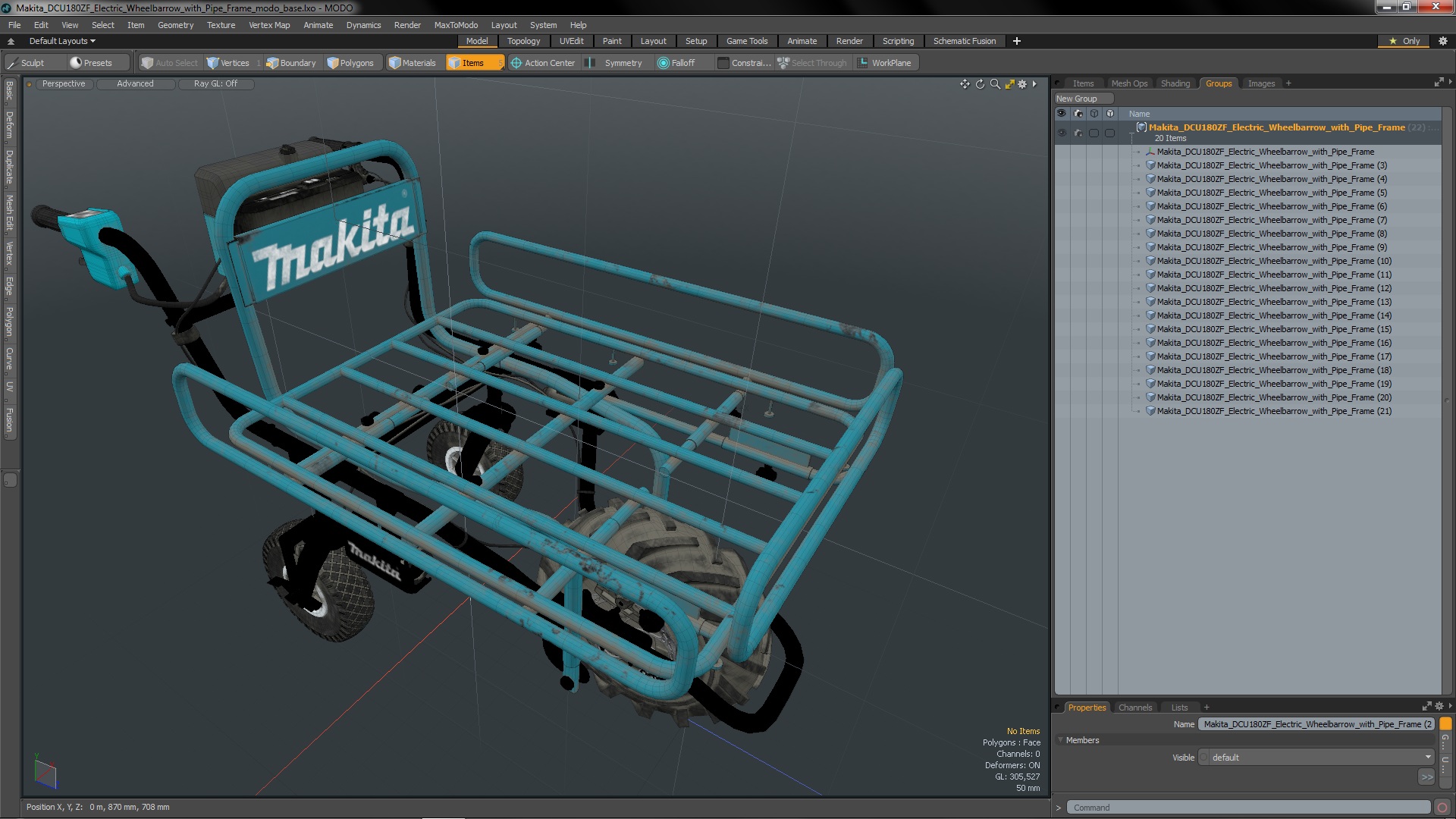 Makita DCU180ZF Electric Wheelbarrow with Pipe Frame is a high quality, photo real 3d model that will enhance detail and realism to any of your rendering projects. The model has a fully textured, detailed design that allows for close-up renders, and was originally modeled in 3ds Max 2020 and rendered with V-Ray. Renders have no postprocessing!