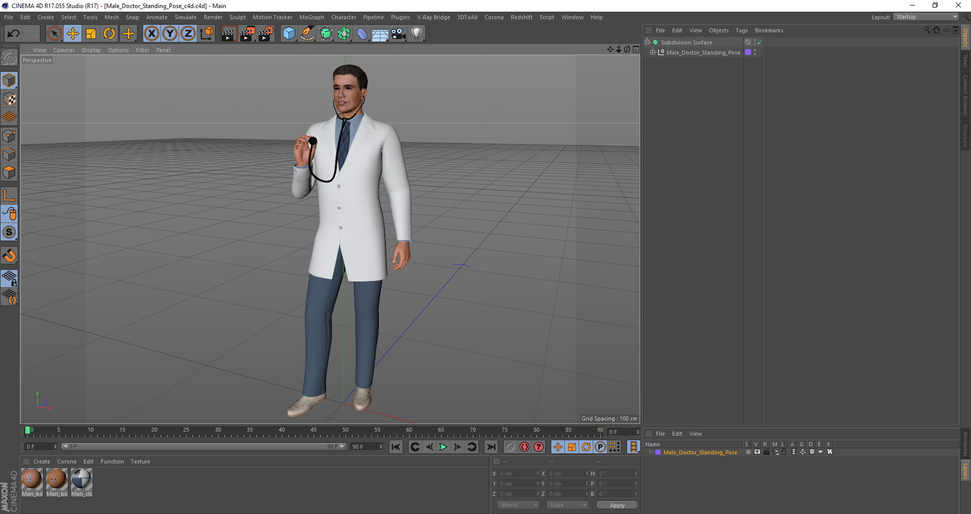 Male Doctor Standing Pose is a high quality, photo real 3d model that will enhance detail and realism to any of your rendering projects. The model has a fully textured, detailed design that allows for close-up renders, and was originally modeled in 3ds Max 2020 and rendered with V-Ray. Renders have no postprocessing!