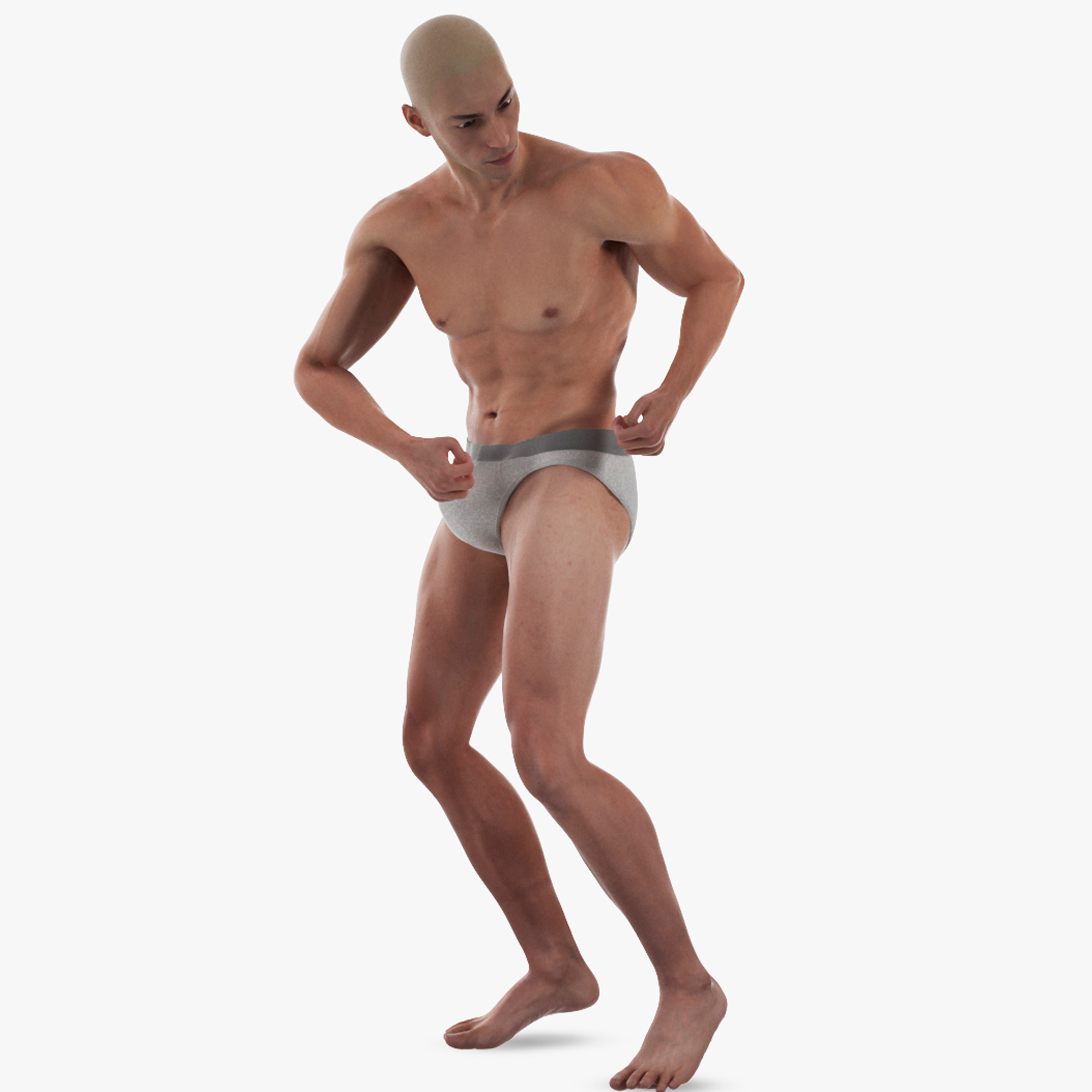 Male Physique Character Rigged is a three-dimensional model of fit and athletic man who is a sport athlete (sportsman) character with underneath, underpants drawers, and who is a strong, muscular and slim athletic build man (athlete model).