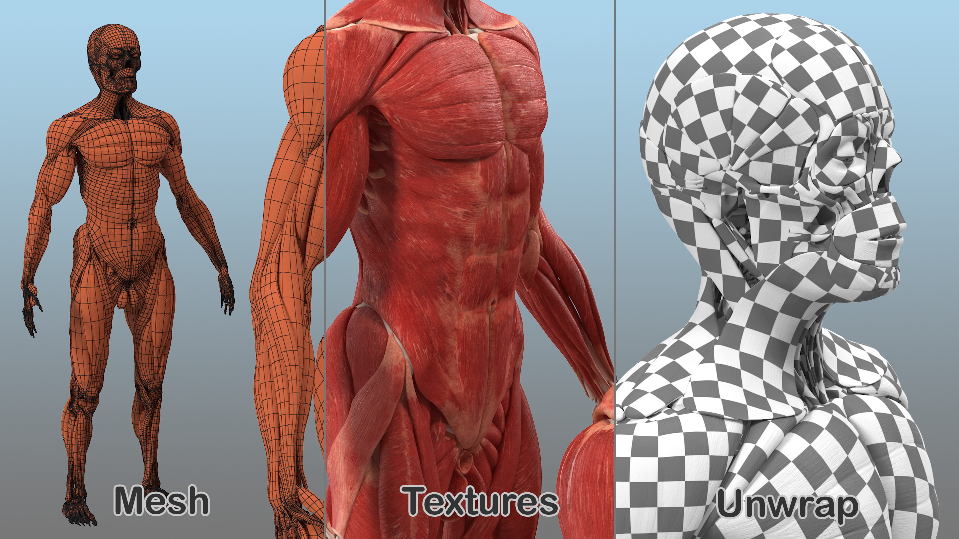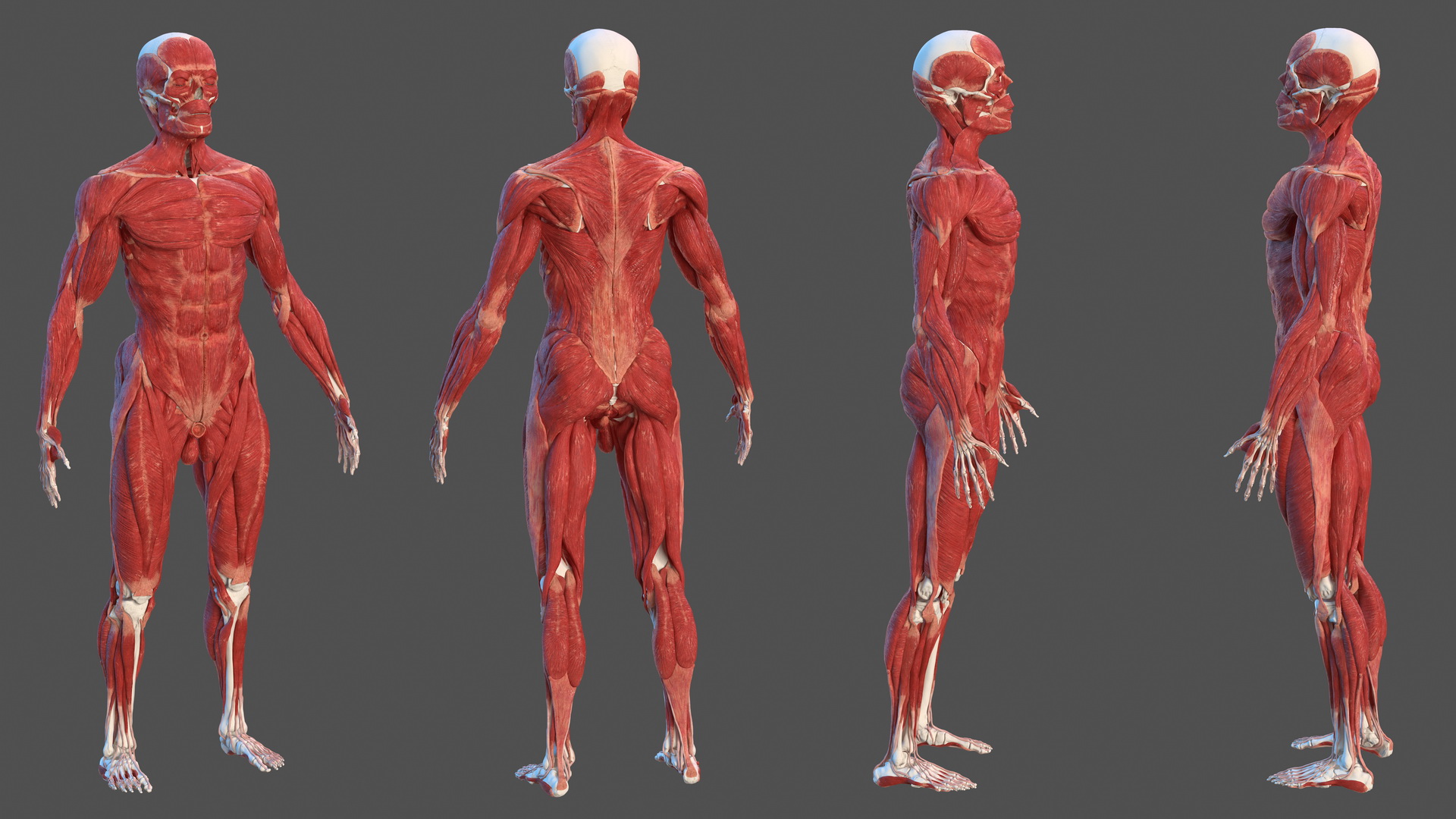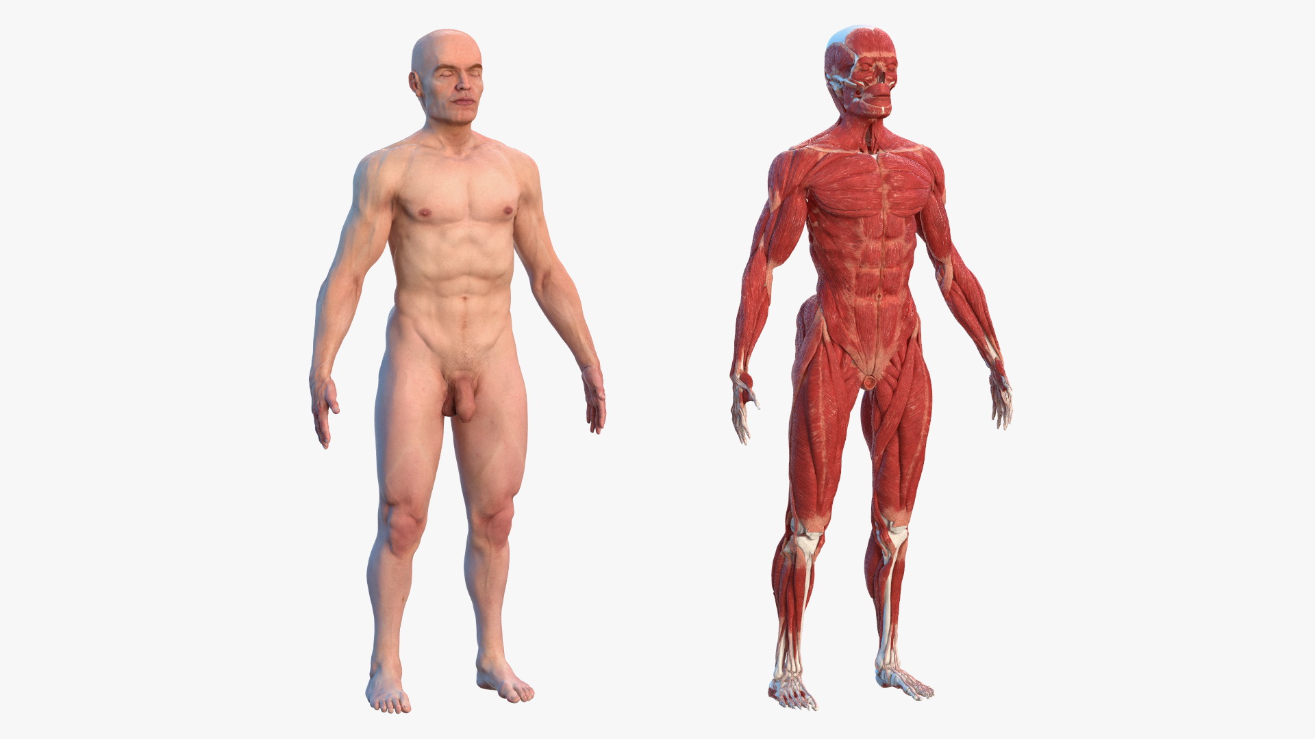 Male Skeleton Muscular System and Skin is a high quality, photo real 3d model that will enhance detail and realism to any of your rendering projects. The model has a fully textured, detailed design that allows for close-up renders, and was originally modeled in 3ds Max 2020 and rendered with V-Ray. Renders have no postprocessing!