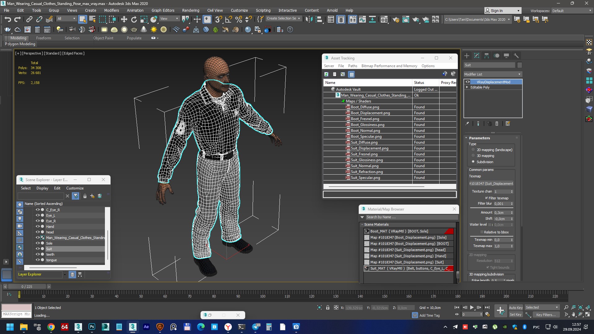 Man Wearing Casual Clothes Standing Pose is a high quality, photo real 3d model that will enhance detail and realism to any of your rendering projects. The model has a fully textured, detailed design that allows for close-up renders, and was originally modeled in 3ds Max 2020 and rendered with V-Ray. Renders have no postprocessing!