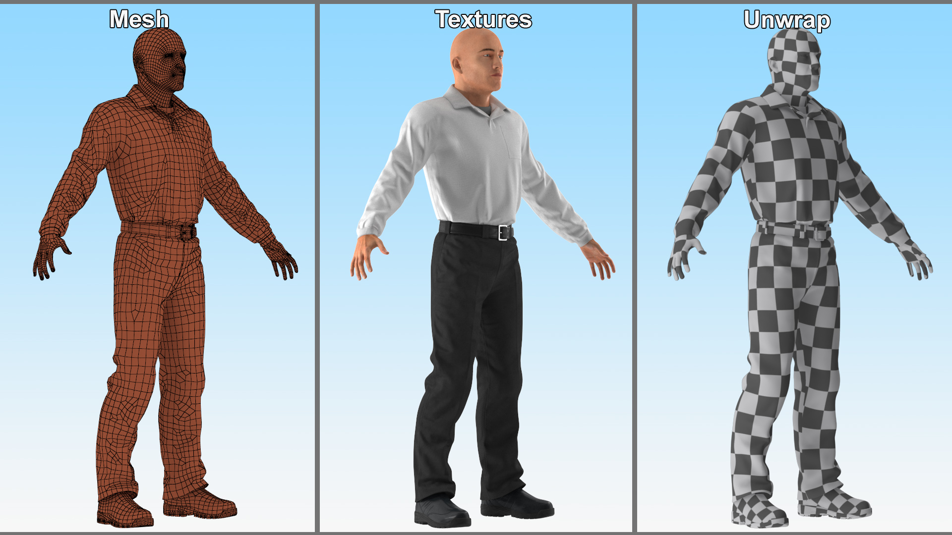Man Wearing Casual Clothes Standing Pose is a three-dimensional model of male character with casual style apparel (clothes set) with shirt, pants or trousers, and shoes.