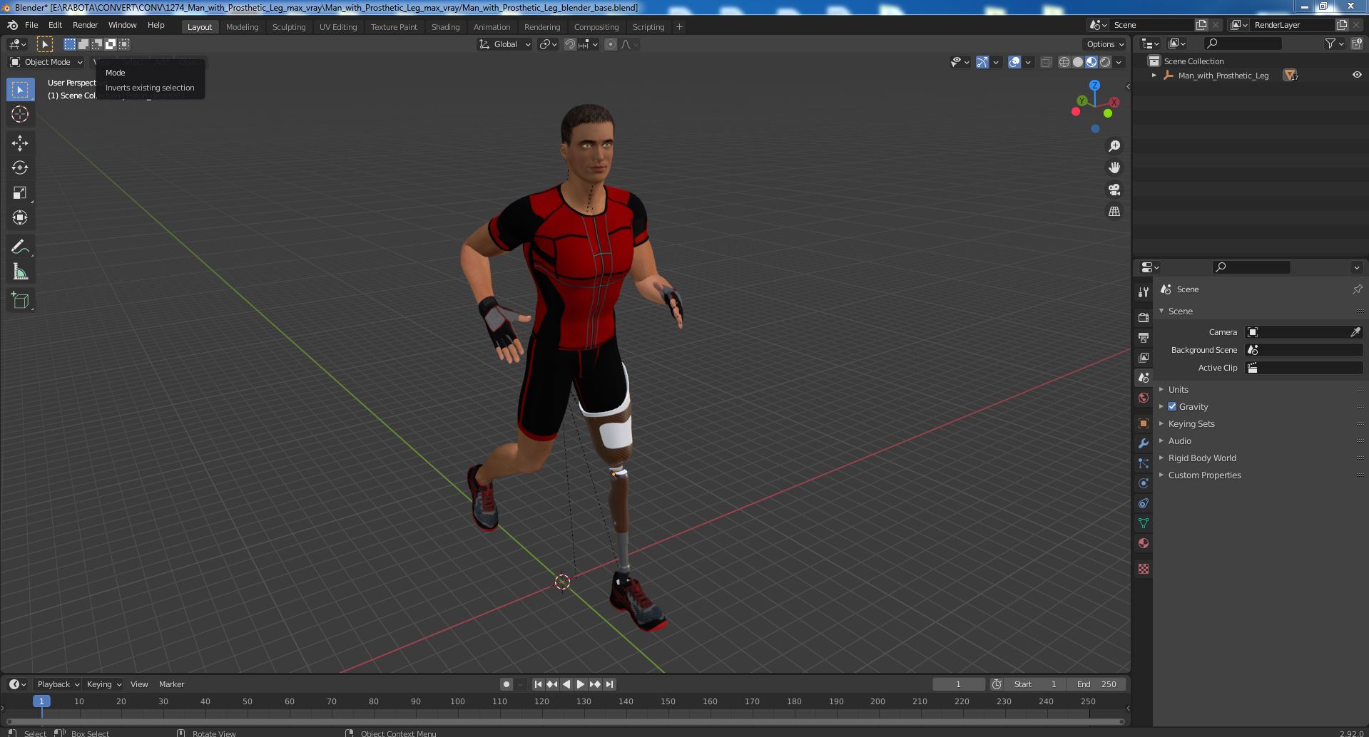 Man with Prosthetic Leg is a high quality, photo real 3d model that will enhance detail and realism to any of your rendering projects. The model has a fully textured, detailed design that allows for close-up renders, and was originally modeled in 3ds Max 2020 and rendered with V-Ray. Renders have no postprocessing!