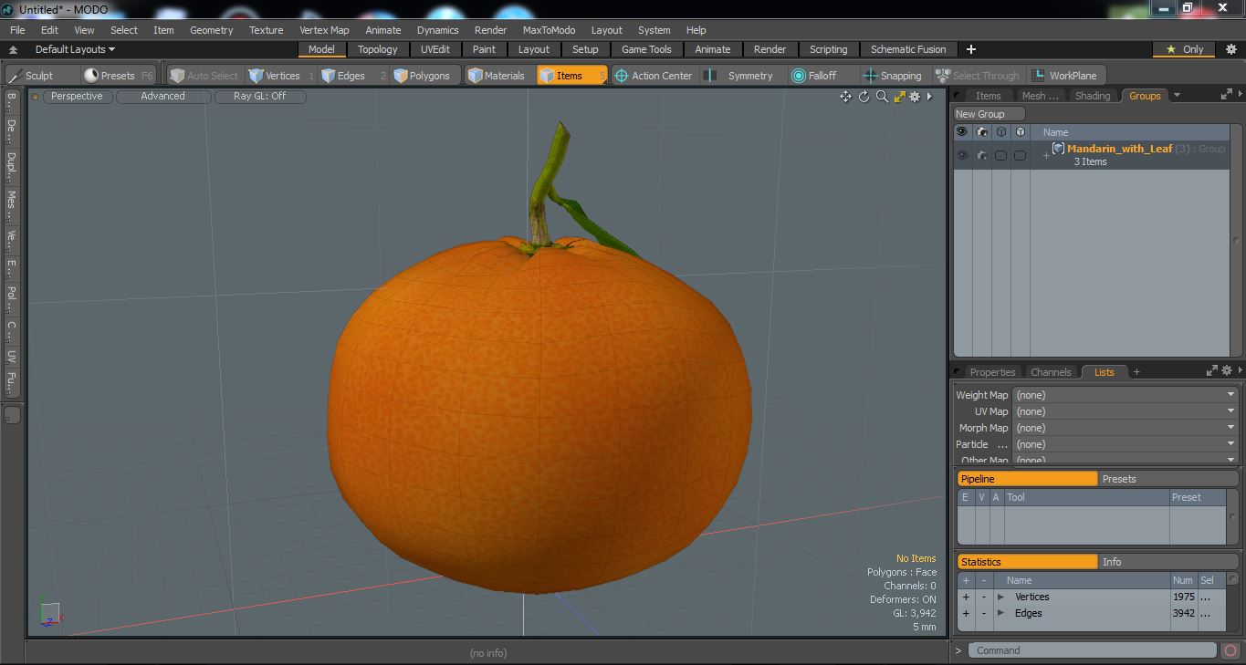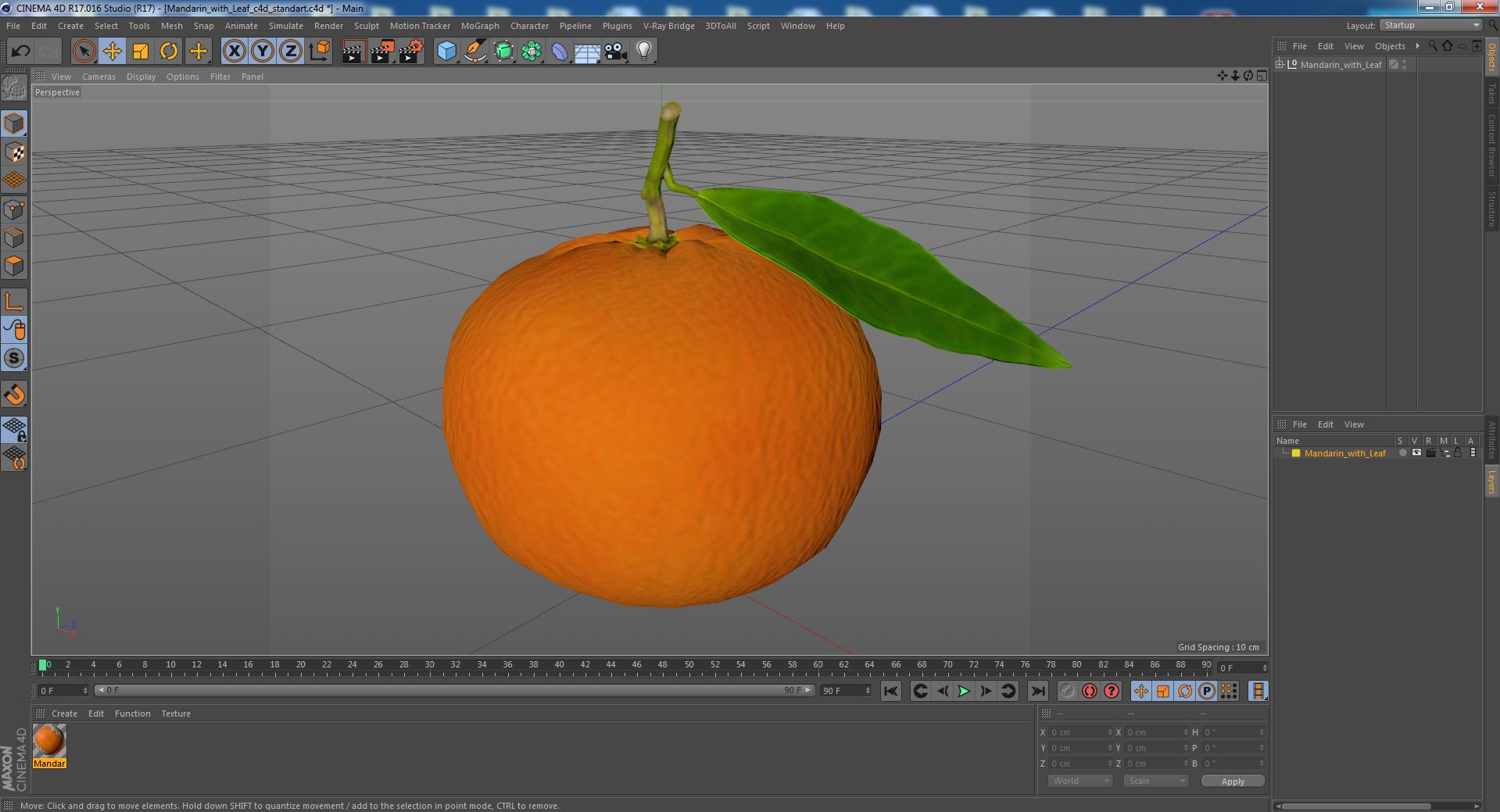 Mandarin with Leaf is a three-dimensional model of an edible citrus tree fruit which is popular food product.
