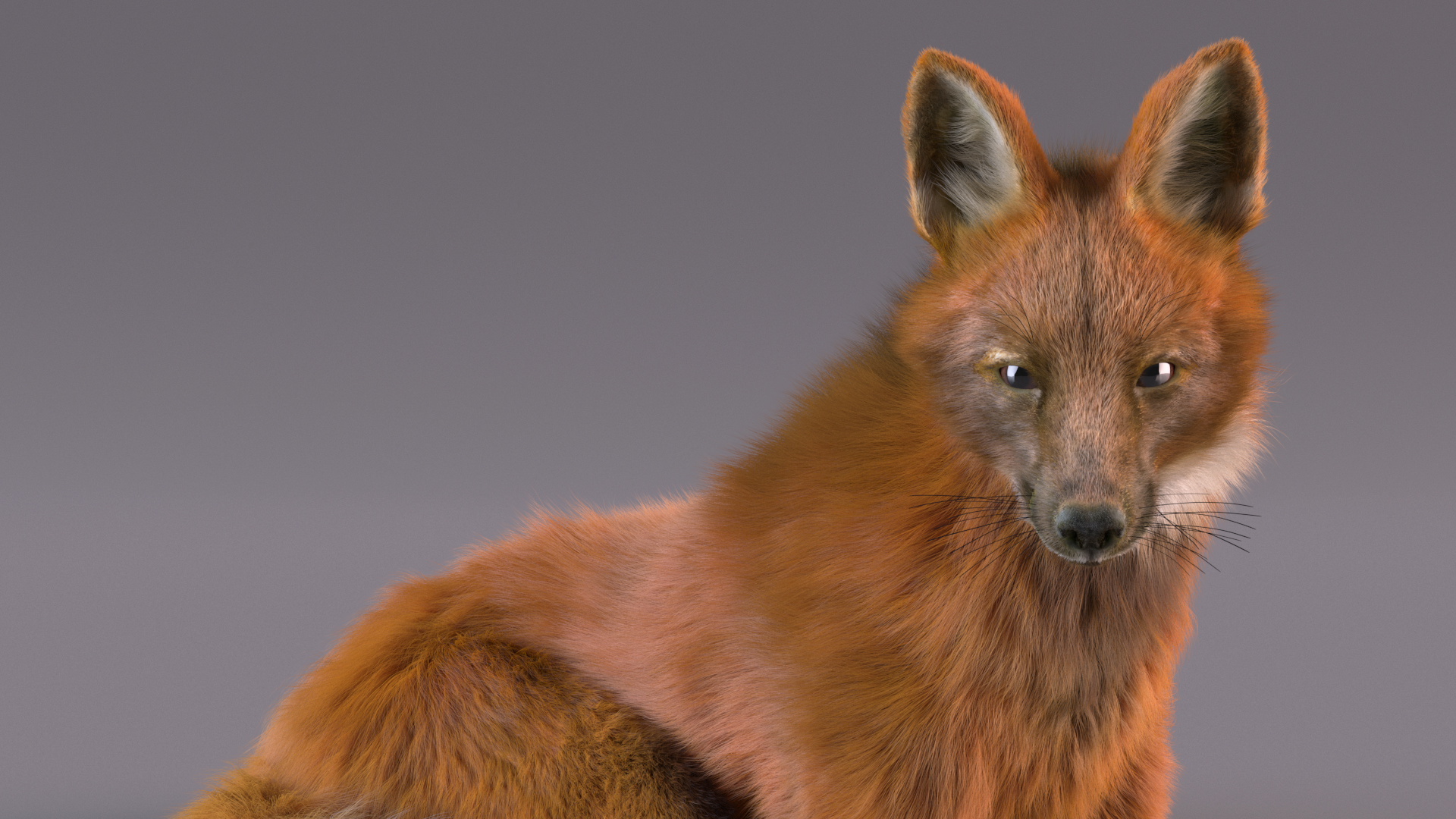 Maned Wolf Reclining Pose Fur is a three-dimensional model of maned wolf (Chrysocyon brachyurus) which is a unique canid species native to South America region.