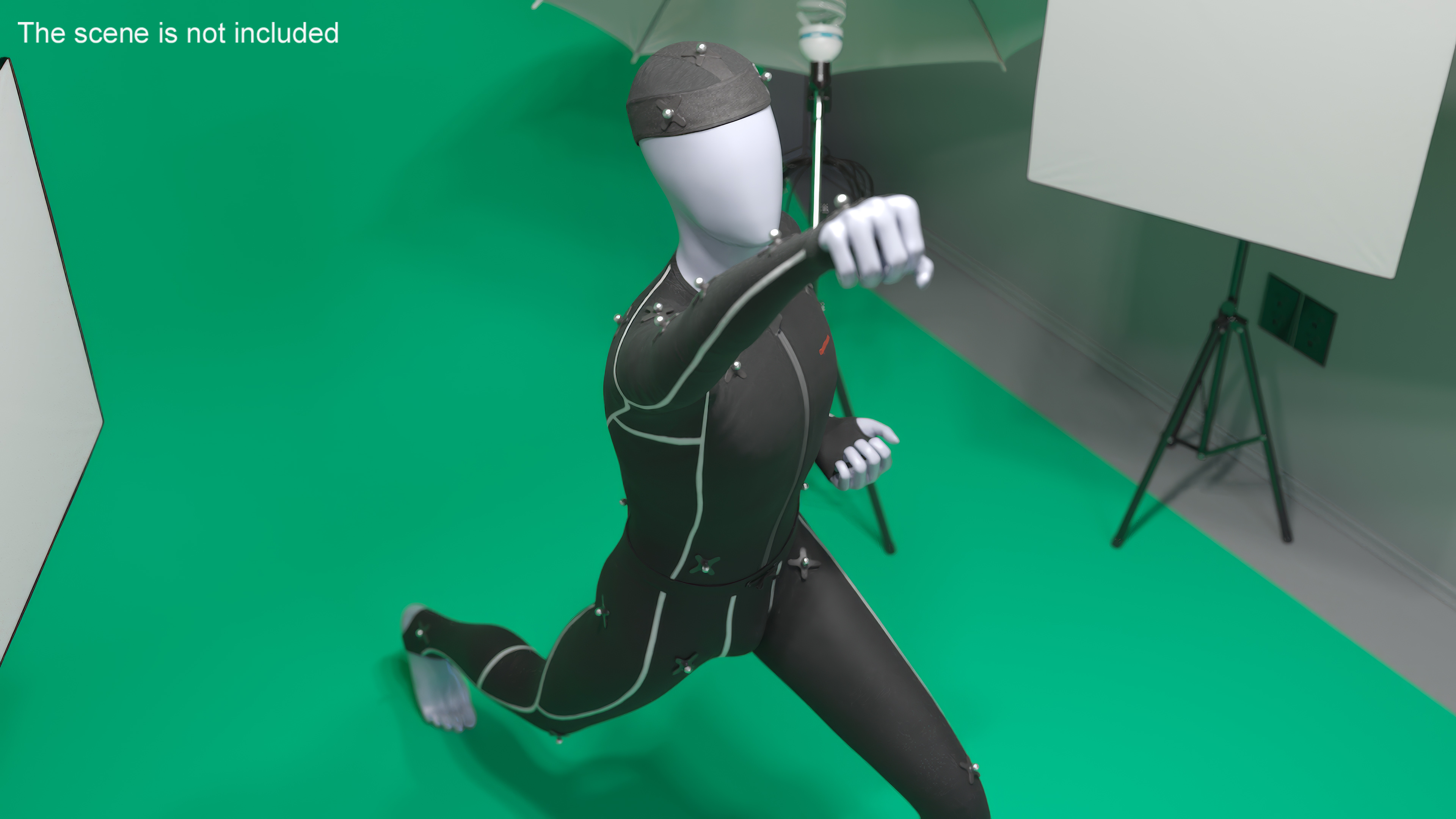 Mannequin in a Motion Capture Suit by OptiTrack is a 3d model of a humanoid mannequin equipped with a motion capture suit, typically used for tracking movement in animation, film production, and virtual reality.