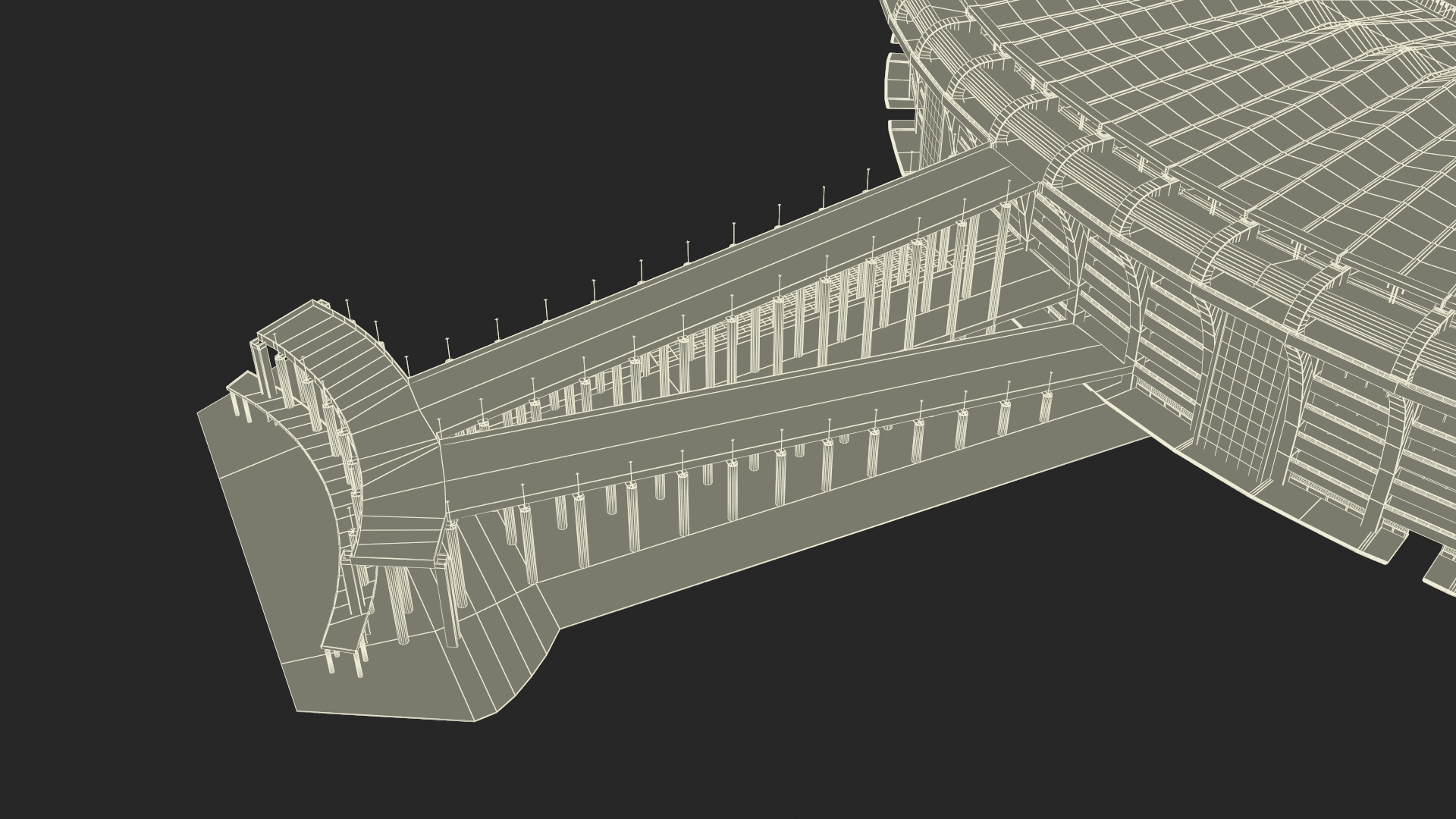 The model replicates the stadium’s distinctive oval structure, with detailed seating arrangements, field dimensions, and the surrounding architecture. Its design captures the essence of the original, from the towering floodlights to the open roof and spectator stands. The model provides accurate proportions and textures, making it ideal for visualizations, presentations, or educational purposes.