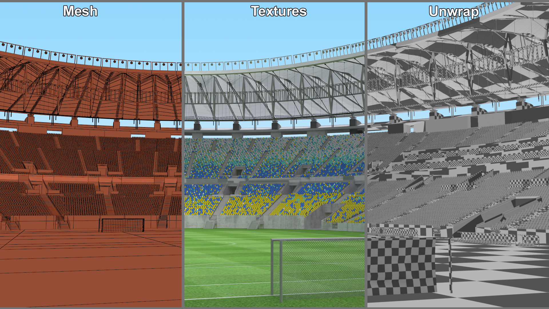 Maracana Stadium is a high quality, photo real 3d model that will enhance detail and realism to any of your rendering projects. The model has a fully textured, detailed design that allows for close-up renders, and was originally modeled in 3ds Max 2020 and rendered with V-Ray. Renders have no postprocessing!