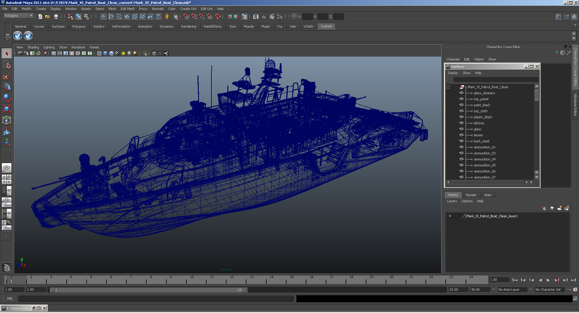 Mark VI Patrol Boat Dirty is a high quality, photo real 3d model that will enhance detail and realism to any of your rendering projects. The model has a fully textured, detailed design that allows for close-up renders, and was originally modeled in 3ds Max 2020 and rendered with V-Ray. Renders have no postprocessing!