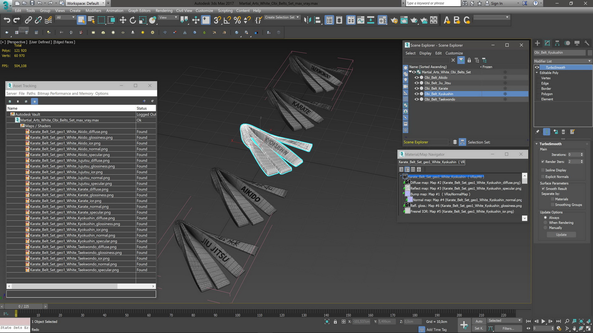 Martial Arts White Obi Belts Set is a high quality, photo real 3d model that will enhance detail and realism to any of your rendering projects. The model has a fully textured, detailed design that allows for close-up renders, and was originally modeled in 3ds Max 2020 and rendered with V-Ray. Renders have no postprocessing!