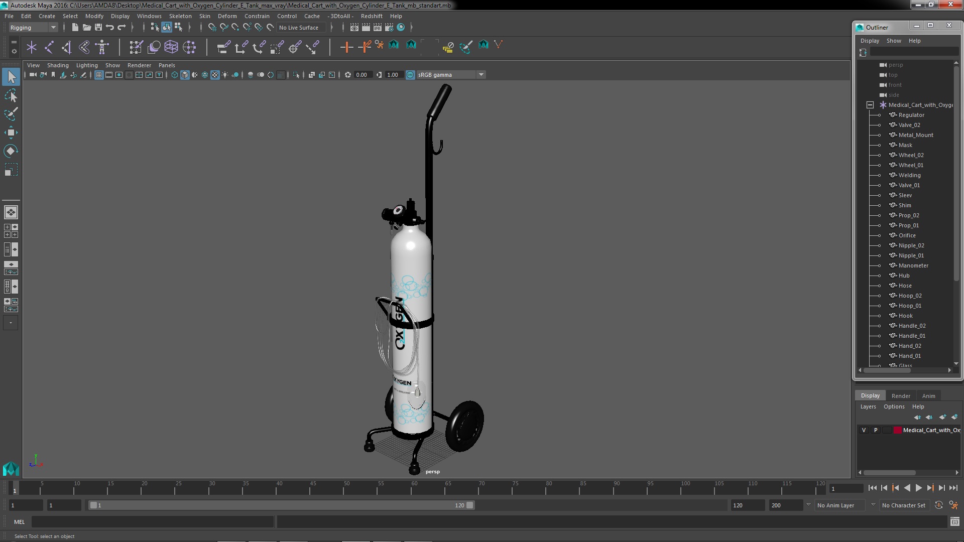 Medical Cart with Oxygen Cylinder E Tank is a 3d model of portable cart designed to hold and transport medical equipment and supplies, including an oxygen cylinder with an E tank size.