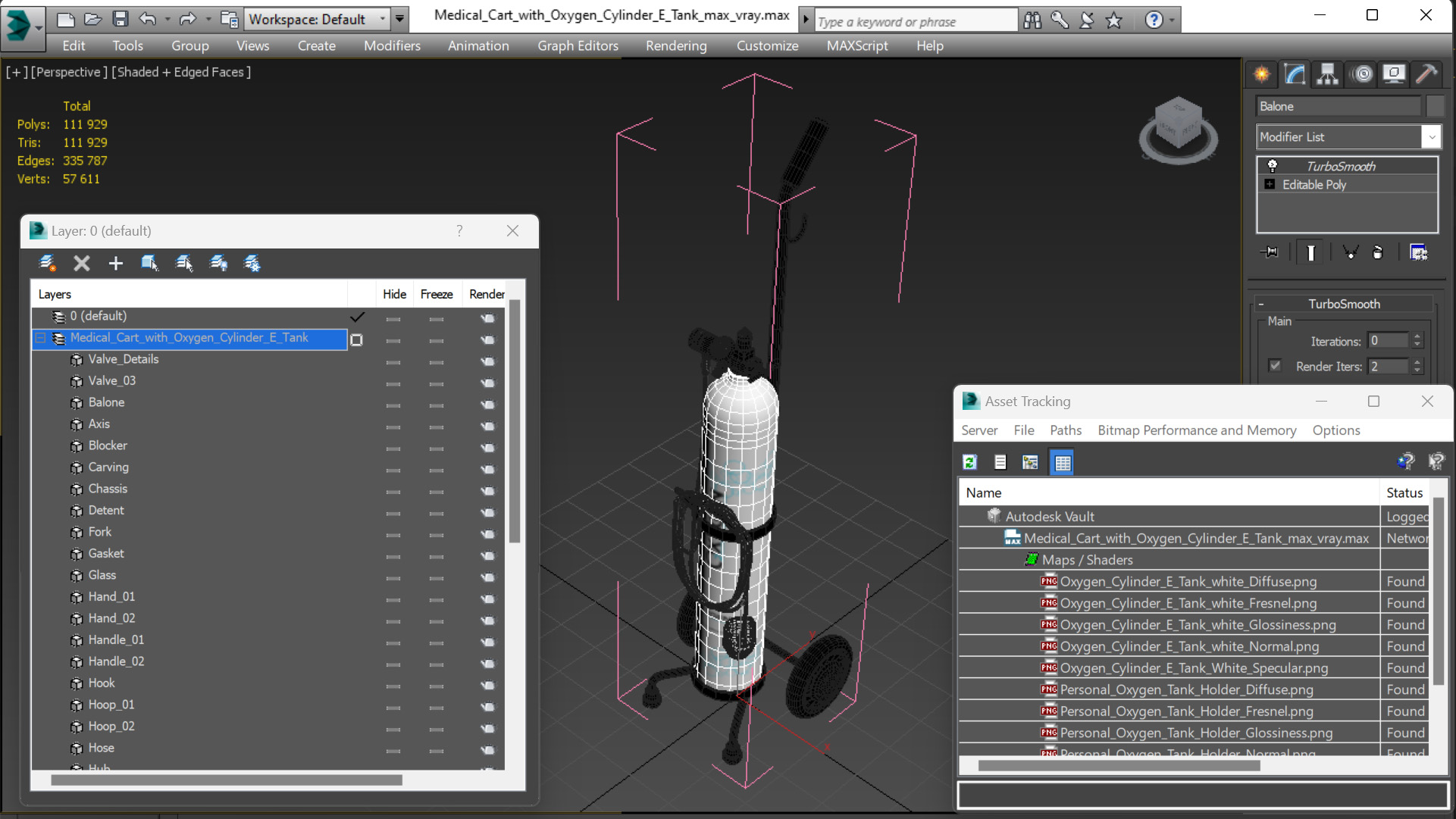 Medical Cart with Oxygen Cylinder E Tank is a high quality, photo real 3d model that will enhance detail and realism to any of your rendering projects. The model has a fully textured, detailed design that allows for close-up renders, and was originally modeled in 3ds Max 2020 and rendered with V-Ray. Renders have no postprocessing!