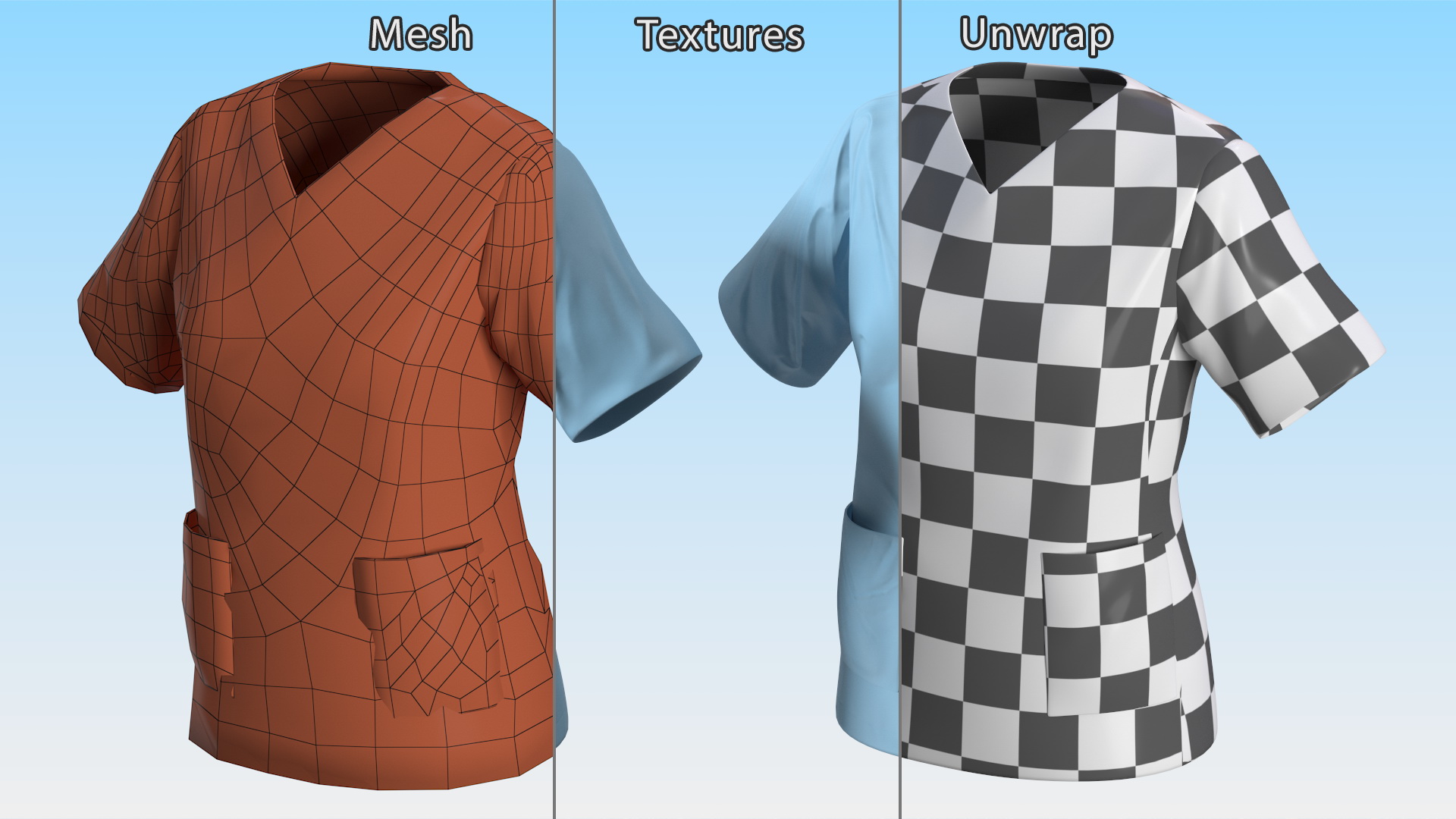 Medical Scrub Top is a 3d model of type of garment worn by healthcare professionals, including doctors, nurses, and other medical staff, as part of their uniform.