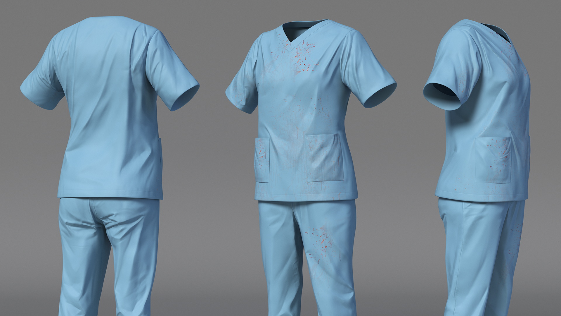 Medical Scrubs Uniform with Stains is a 3d model of clothing worn by healthcare professionals, such as doctors, nurses, and medical assistants.